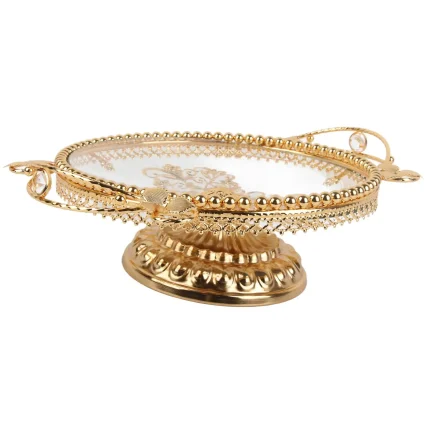 Hign-concerned Chemical: None Material: Wicker Brand Name: DZQ Origin: Mainland China Gold Glass Fruit Tray Handcraft Multipurpose Candy Plate with Alloy Base Alloy Base