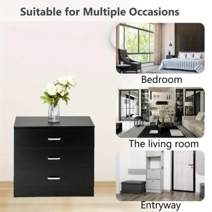Wooden Dressers Chest of Drawers 3 Drawer Black Finish Bedroom Storage Furniture