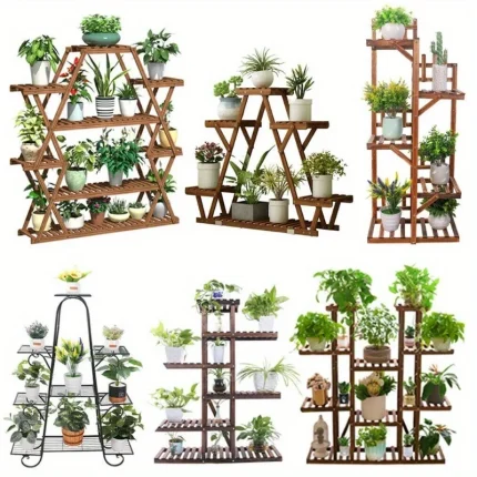 Wood/ Bamboo/Metal Shelf Flower Pot Plant Stand Rack Garden Indoor Outdoor Patio