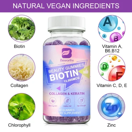 Hign-concerned Chemical: None Usage And Dosage: Take 2 gummies every day after meals Ingredients: Vitamin Biotin Product Specification: 60 pcs Gender: Unisex Department Name: ADULT Charge