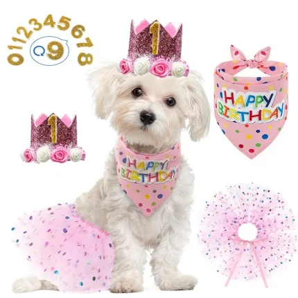 Dog Birthday Scarf Hat Set Cat Party Supplies Pet Scarf Puppy Birthday Lace Hat Scarf For Small Medium Dog Pet Accessories