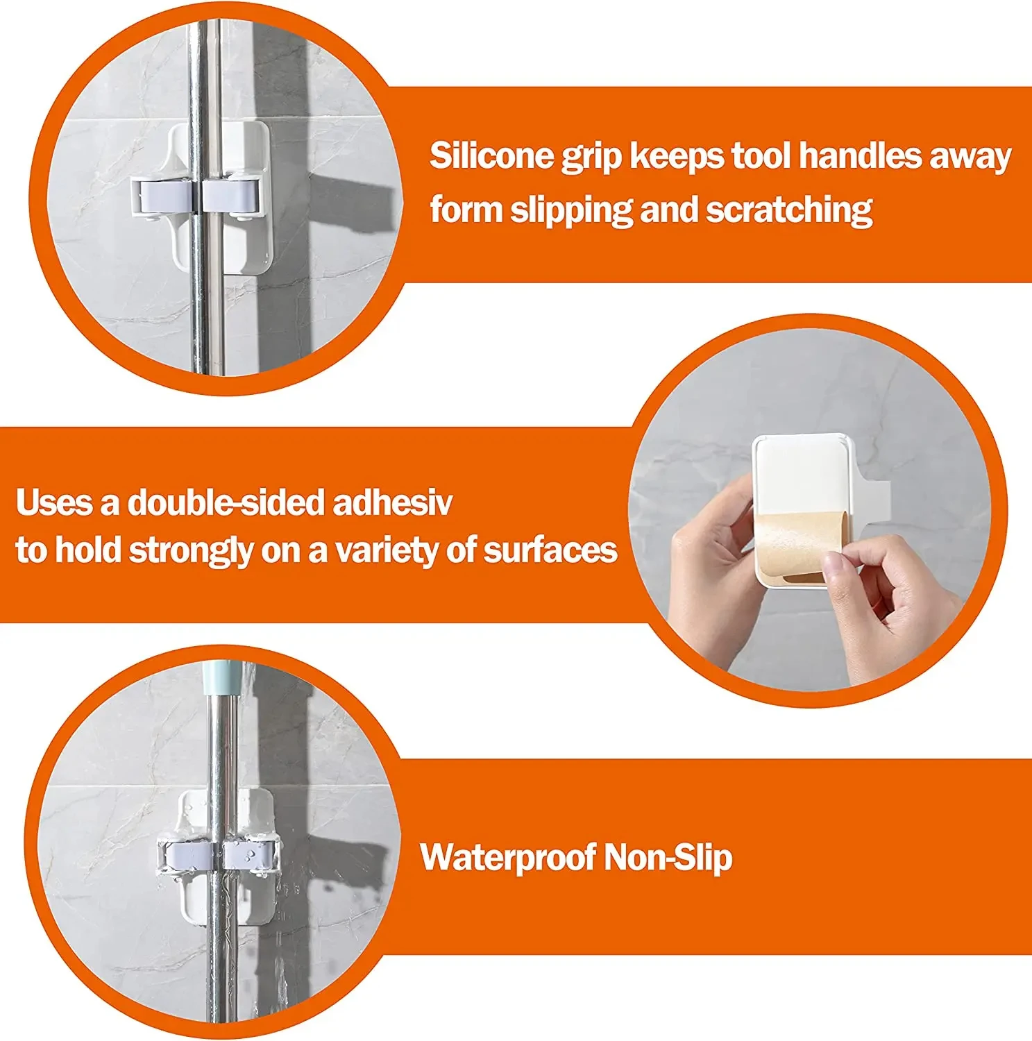 Superb Stable – The broom holder has strong glue adhesives walls and doors are exclusively stable, and silicone grip keeps tool handles away from slipping & scratching.