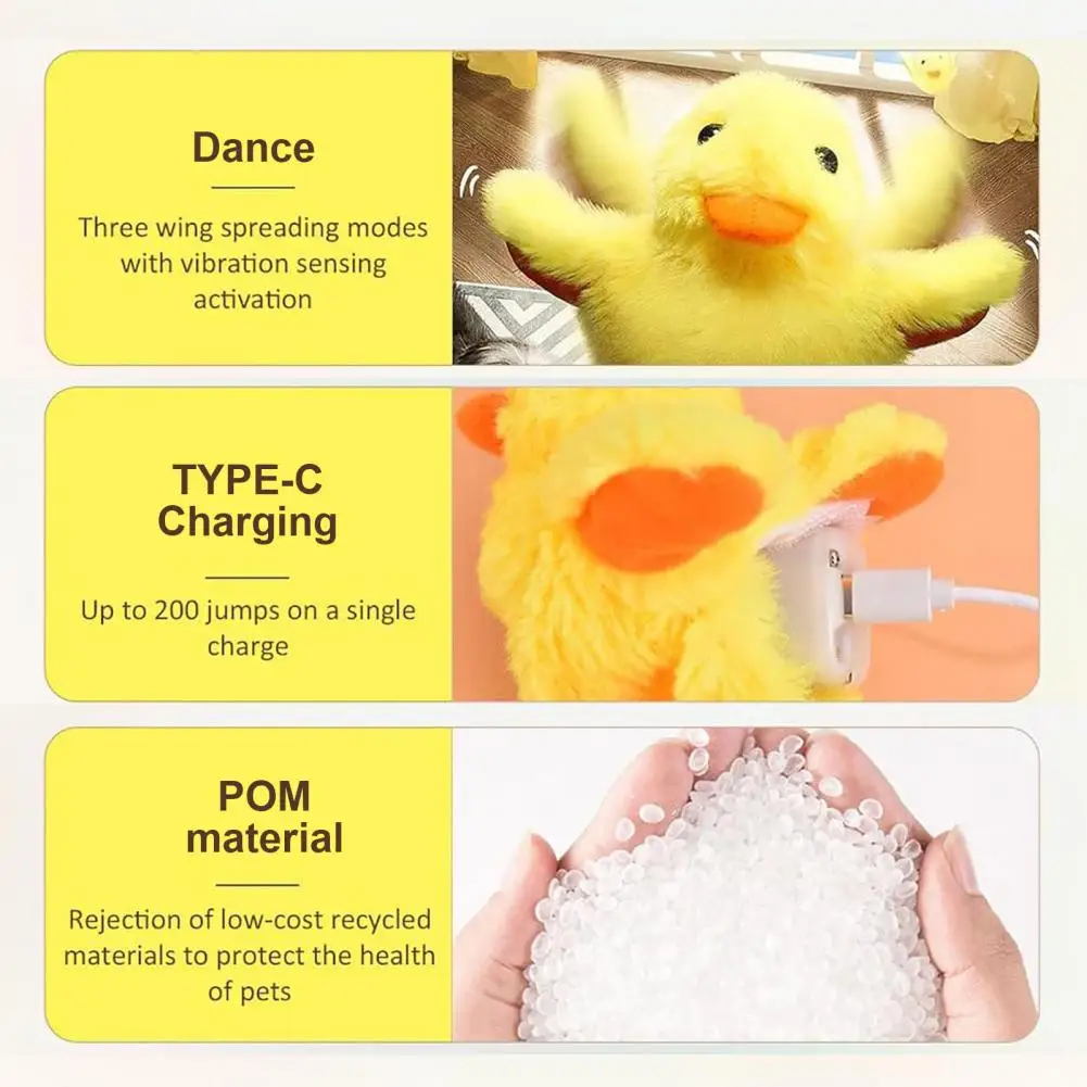 Durable & Easy to Clean: Crafted with durable materials, this flapping duck cat toy withstands vigorous play while maintaining its quality. The removable charging mechanism allows for convenient cleaning, ensuring a hygienic and long-lasting toy that your cat can enjoy for hours on end.