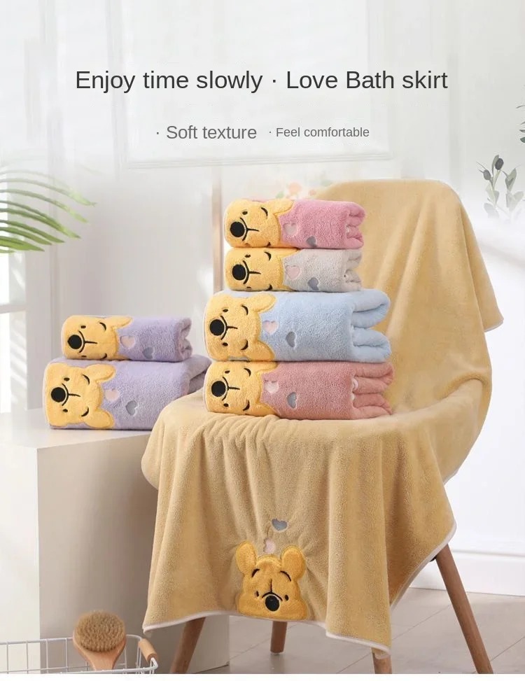 1-5PCS Winnie Bear Towel Bath Towel Set Soft and Absorbent Coral Velvet Bath Towel Home Wash Towel Children’s Cartoon Bath Towel