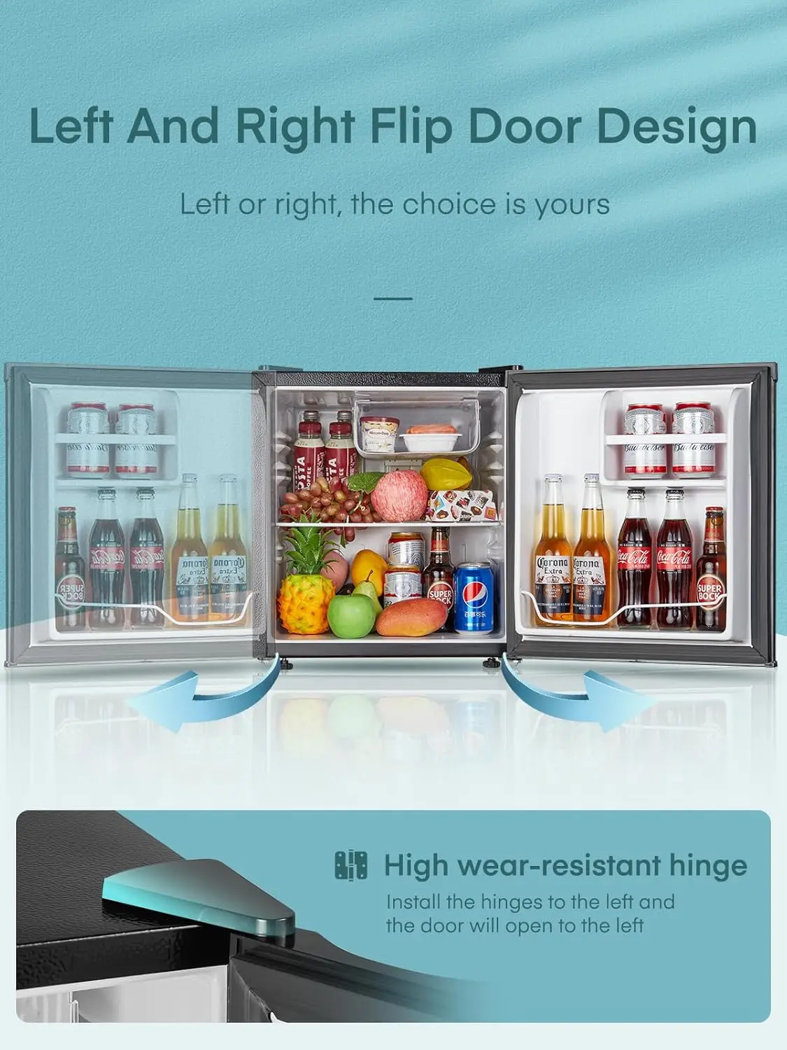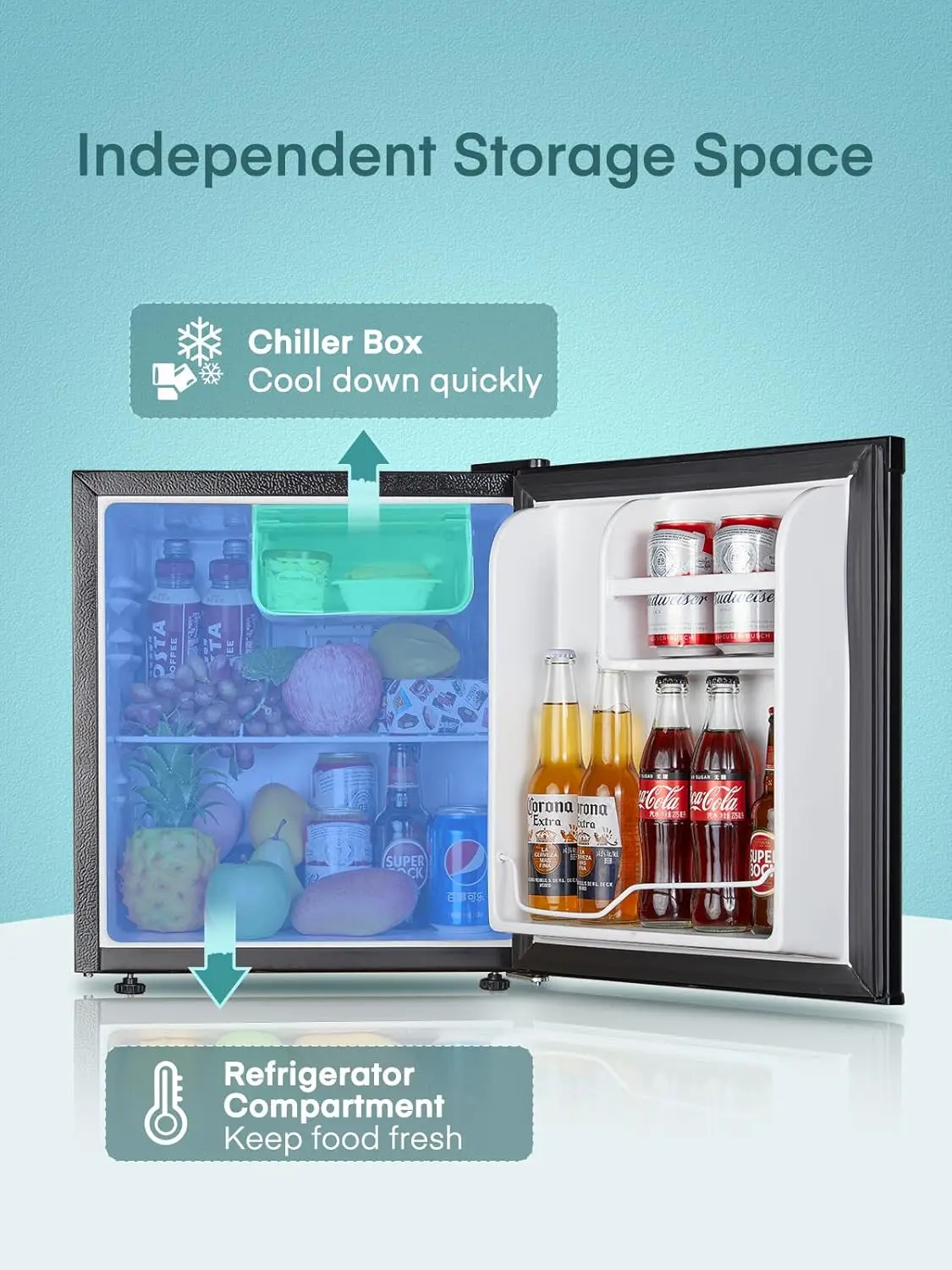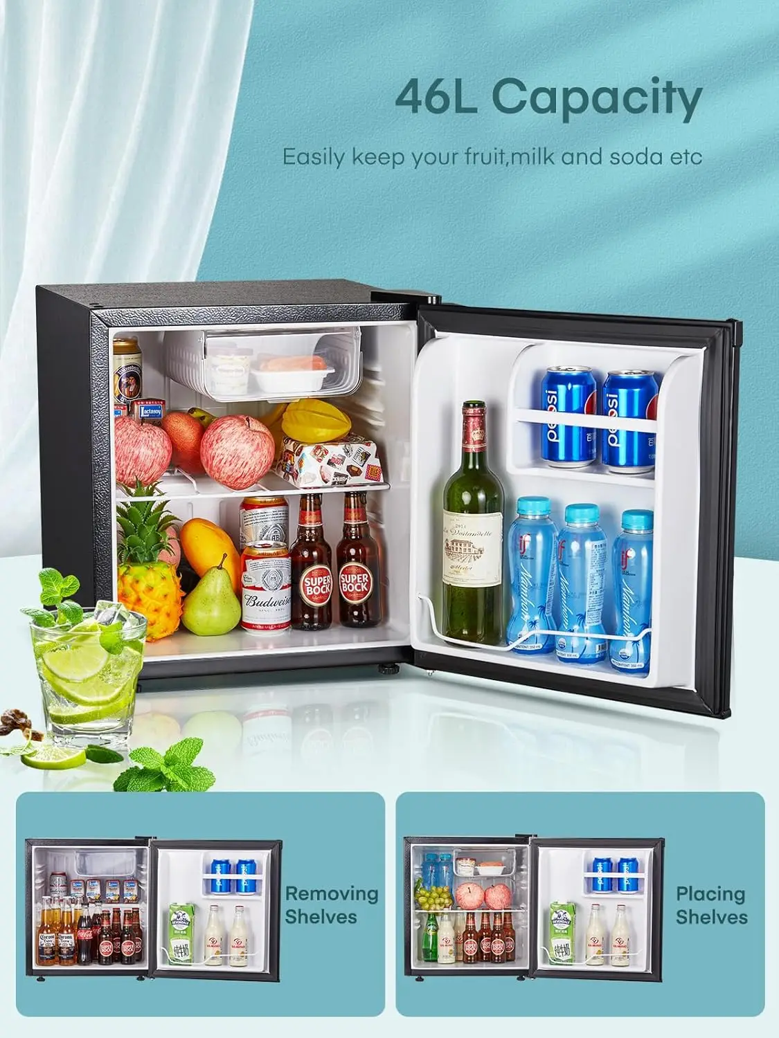 • 【Suitable for Every Food】Our 1.62 cubic feet mini refrigerator has a 1.46 cubic feet refrigeration area and a 0.16 cubic feet freezer area. Whether it is vegetables, fruits, breast milk, meat or seafood, this compact refrigerator can meet storage needs.