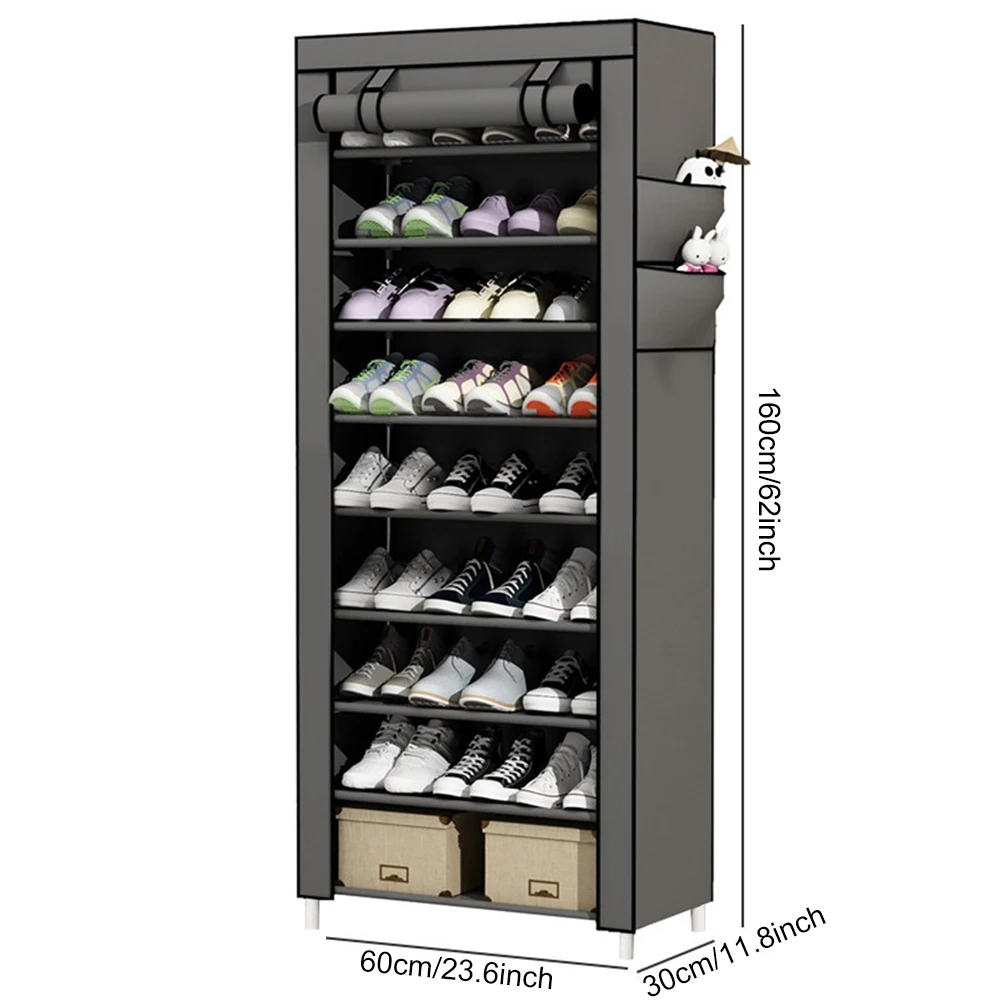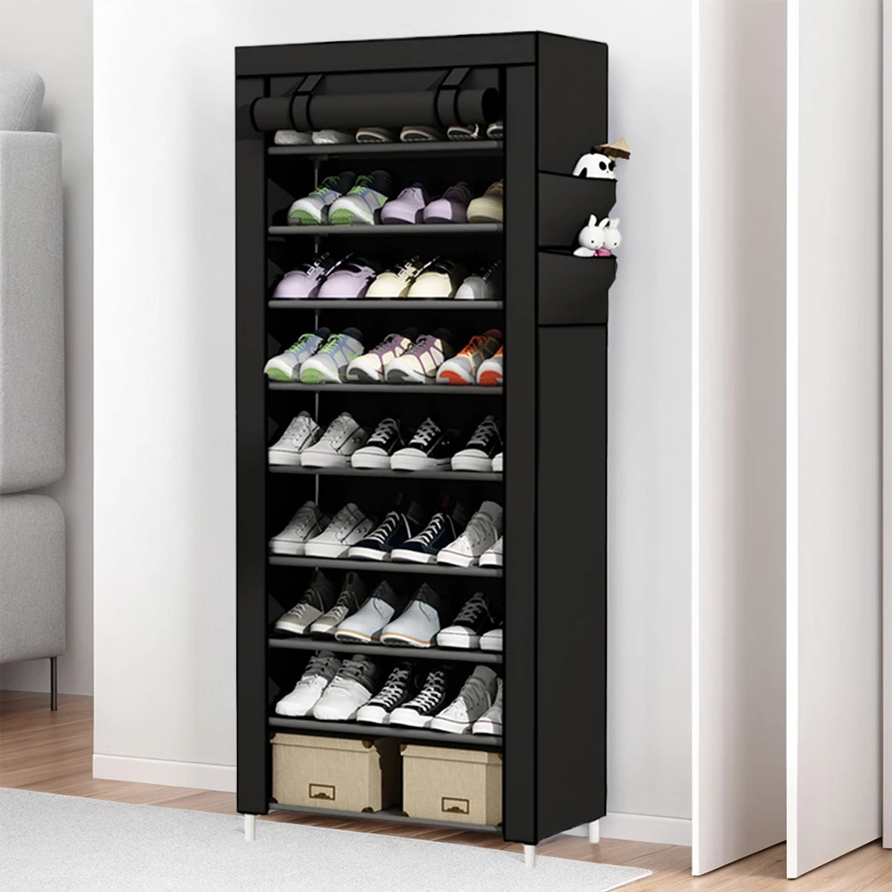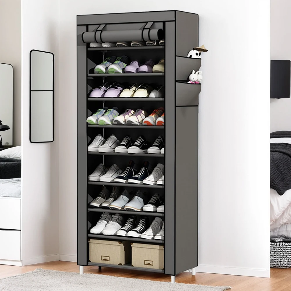 10 Layers Shoes Cabinet with Cover Dustproof Shoes Storage Rack Free Standing Organizer for Home Student Dormitory Office Worker