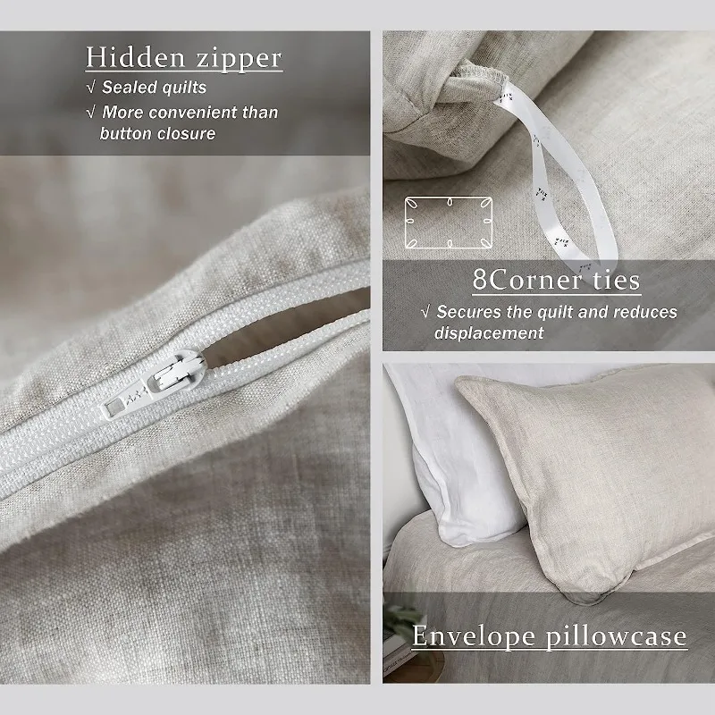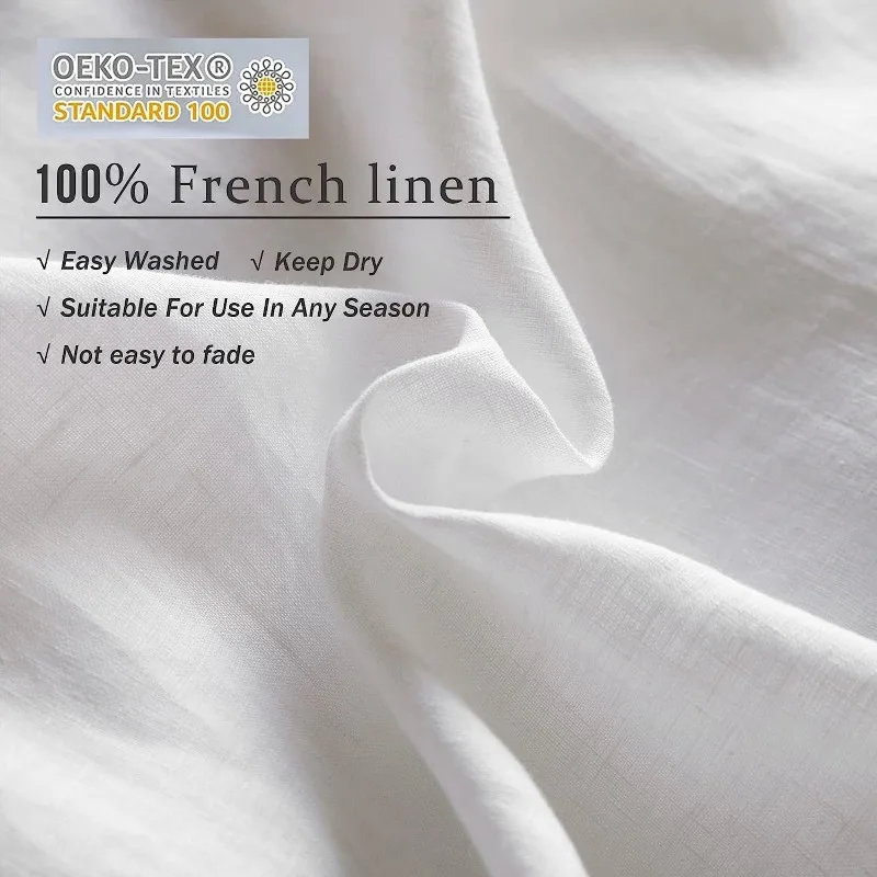 • 【Soft and Textured,Offers Year-round Luxury】Unique lightweight, breathable,heat conduction and moisture absorption properties allow our comforter cover set to be used all year round,cool in summer for hot sleepers and warm in winter.Like a gentle, warm hug, the incredible softness of this natural flax linen is impossible to resist,the bedding duvet covers will get softer with every wash as slender and natural fiber. Slightly wrinkled look of linen ensures a relaxed and textured farmhouse style.