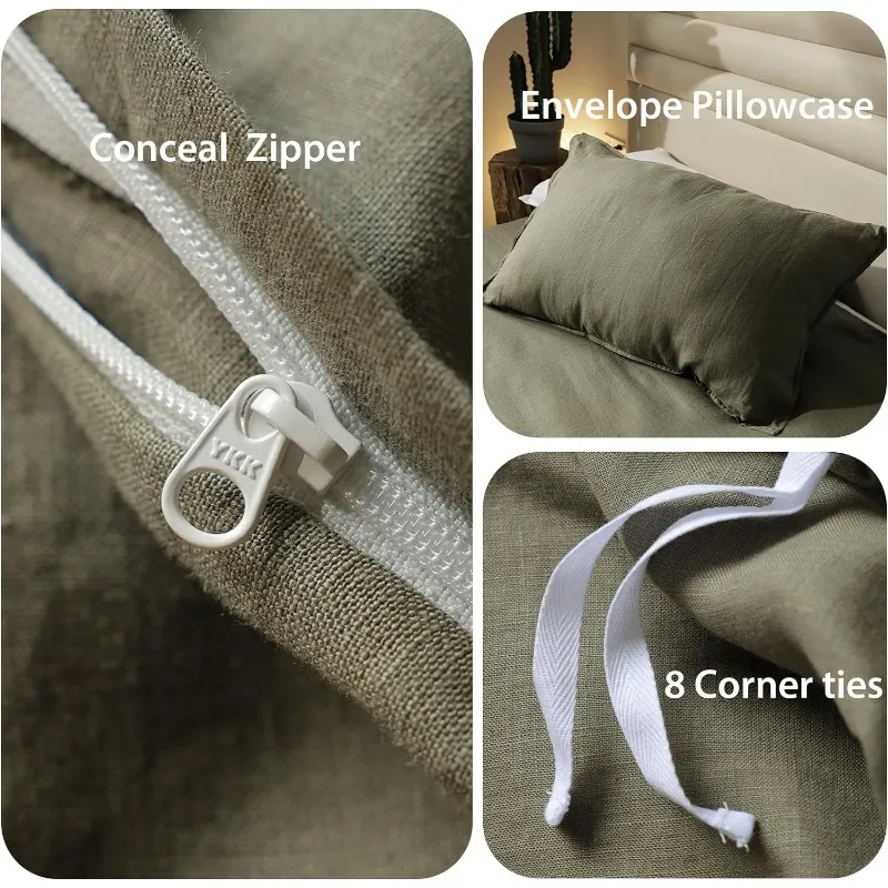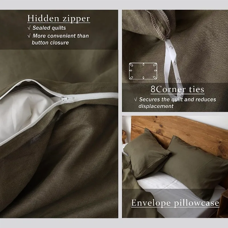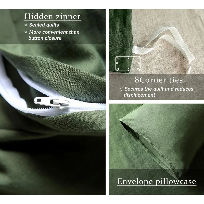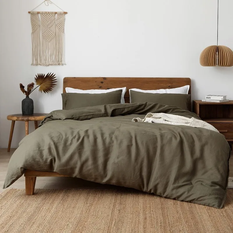 • 【GIFT CHOICE】Transform your bedroom into a holiday wonderland with this linen duvet cover set. In everyday life, it can also be paired with vintage, bohemian, and minimalist styles. The classic olive green duvet cover set is definitely a gorgeous gift choice for Christmas, New Year’s and holidays.