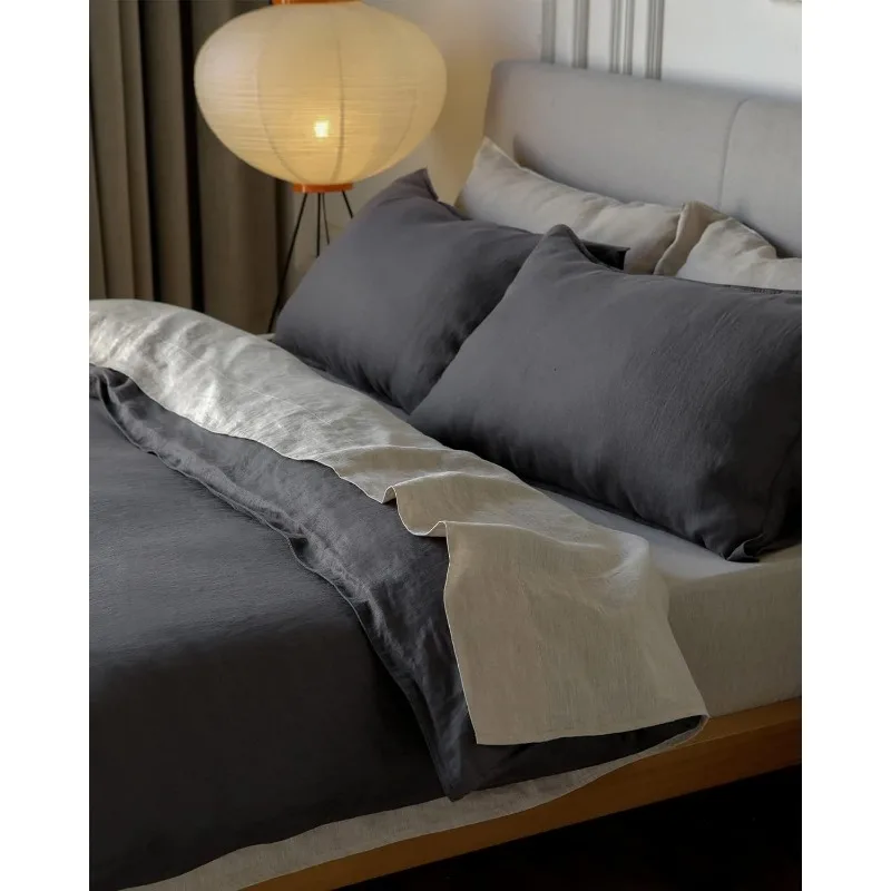 100% Linen Duvet Cover Bedding Set, Cooling Duvet Cover with Soft,Breathable,Fluffy Cover (1 Duvet Cover,2 Pillowcases)