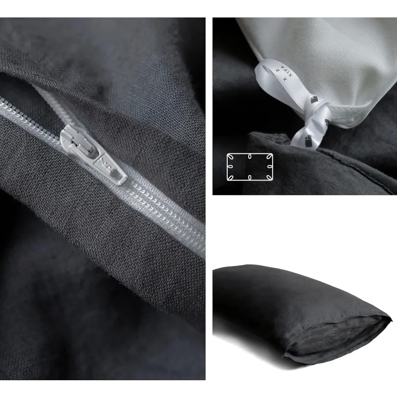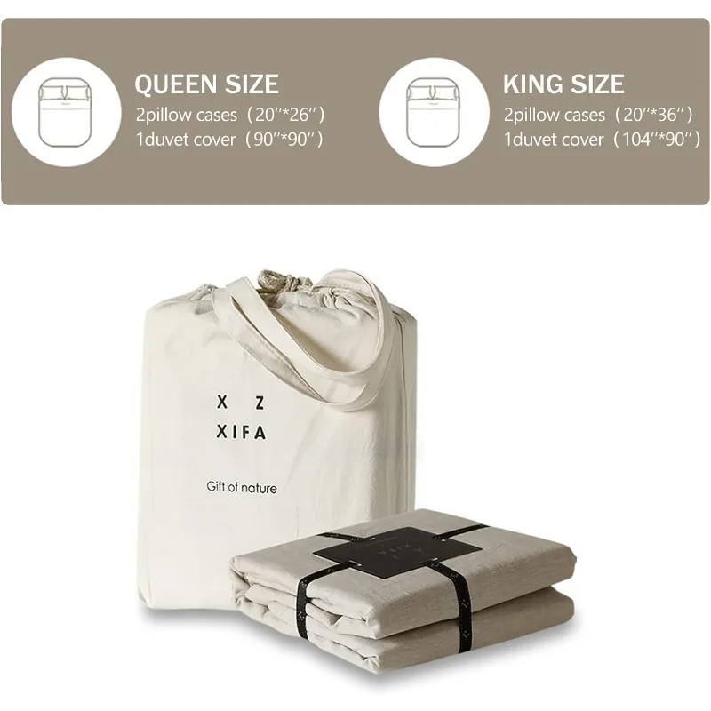 • 【Package Includes and Thoughtful Design】1*Linen duvet cover queen(90″×90″), 2*pillowcases(20″×26″), 1*reusable packaging bag. The canvas shoulder bag could be used in daily life, portable drawstring design and eco-friendly. 8 corner ties inside prevent quilt shifting, hidden zipper closure is more convenient and simply than button closure. Pillowcases is envelope closure, easy to put in or take out the pillow. Our designers considered all for your comfort.