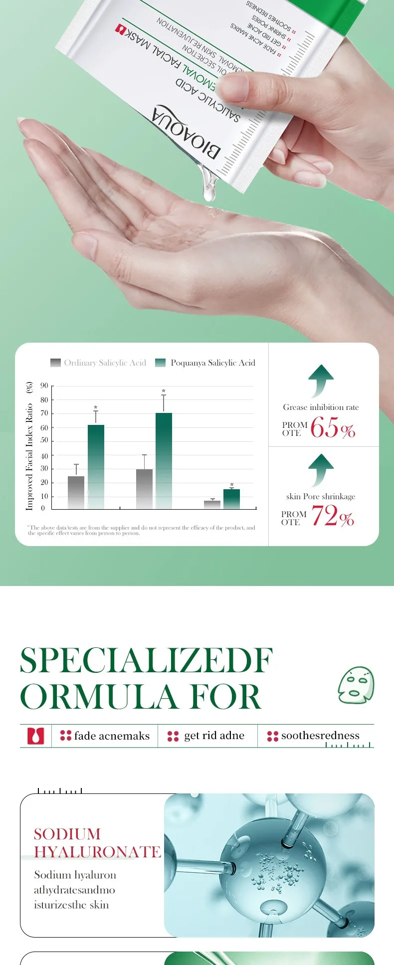 10pcs BIOAQUA Salicylic Acid Acne Removal Facial Mask Moisturizing Remove Blackhead Marks Soothes Skincare Face Mask