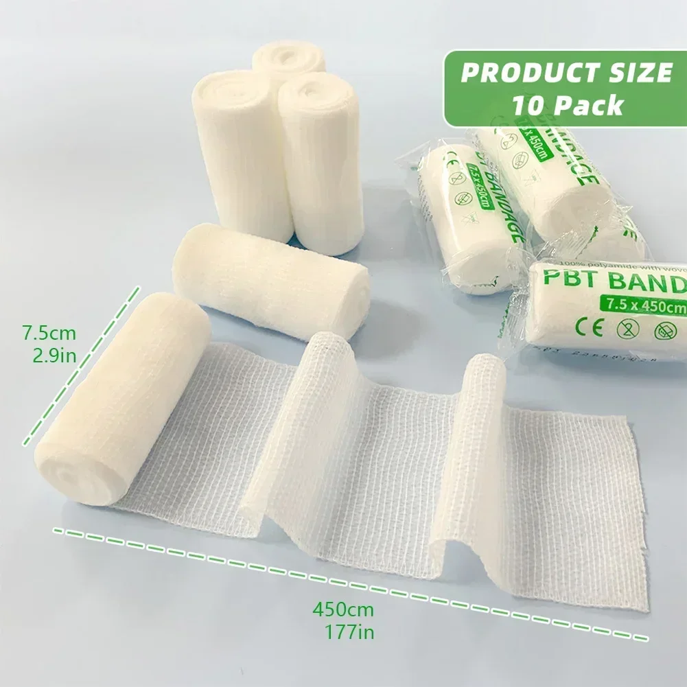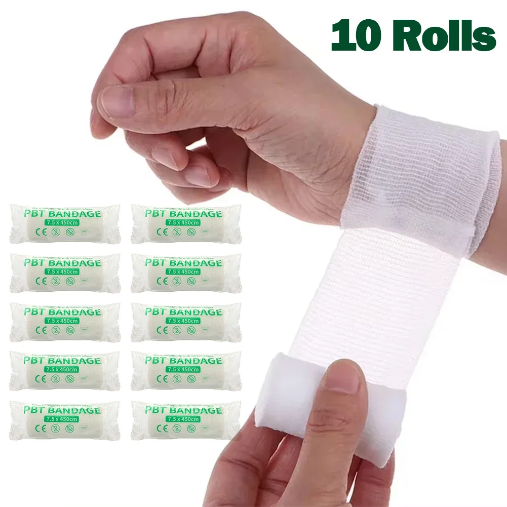 10Rolls 7.5cm X 4.5m Cotton PBT Elastic Bandage Medical Supplies Conforming First Aid Gauze Wound Dressing Emergency Care