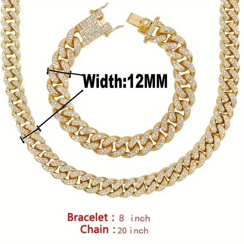 Home Jewelry and Watches 12mm Cuban Chain With Watch Set Gift Box Men’s Ice Inlaid Necklace Bracelet Watch Set Hip Hop Chain Ice Jewelry Men’s Jewelry