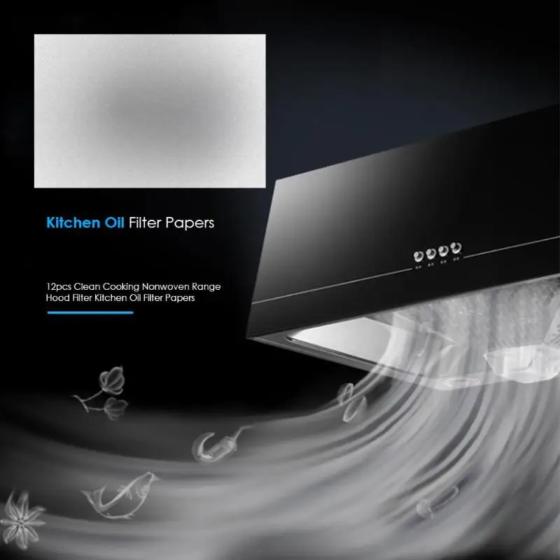 12Pcs Clean Cooking Nonwoven Range Hood Grease Filter Kitchen Oil Filter Papers Good Kitchen Cleaning Tool Good Air Permeability
