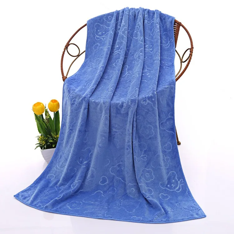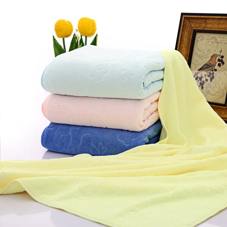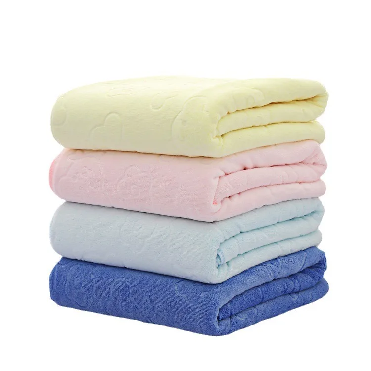 140*70cm Bath Towel Plain Bath Household Children’s Bath Towel Thickened Soft Cartoon Bear Embossed for Infant Boys Girls
