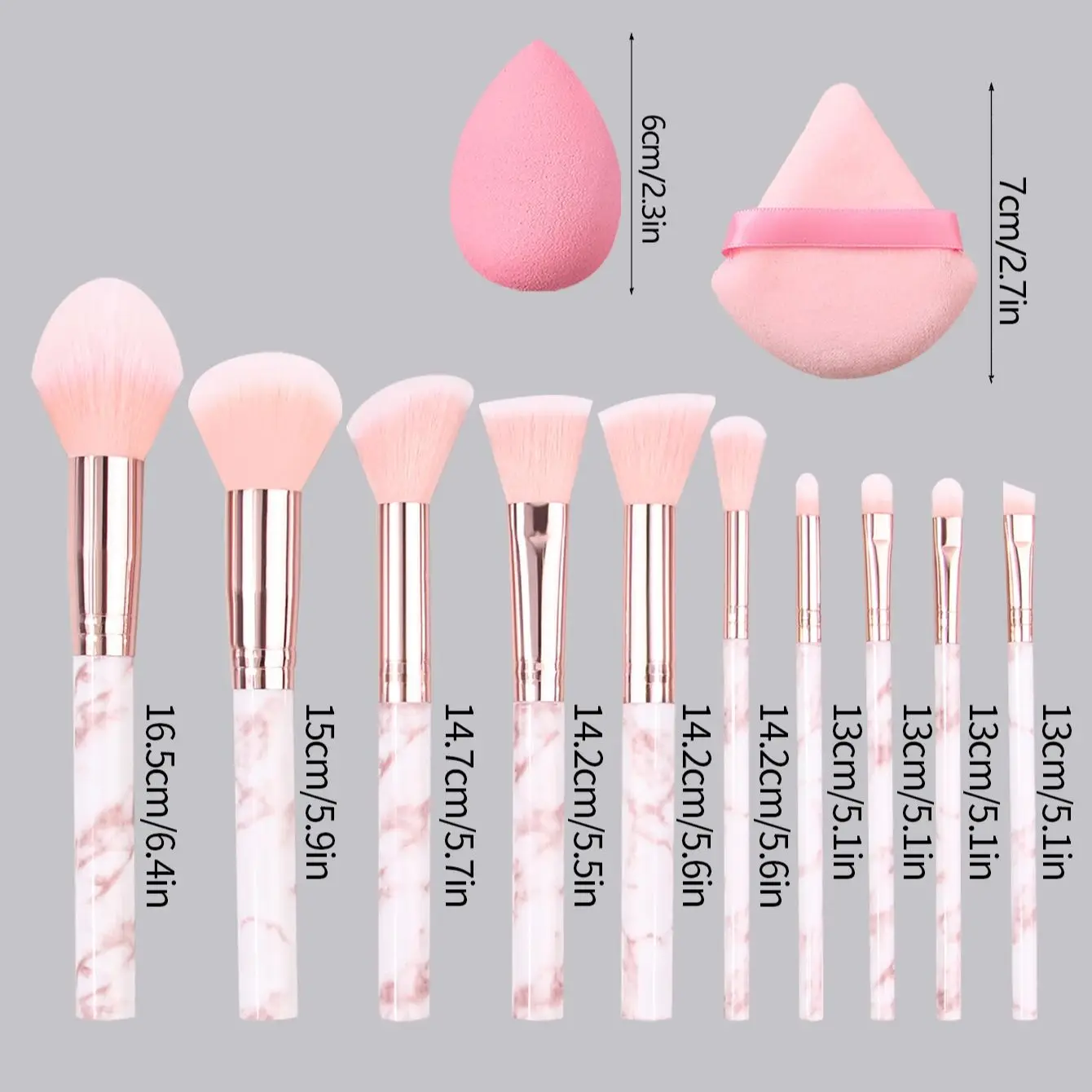 17PCS pink portable set 10 makeup brush sets +6pcs triangular powder puff, makeup egg +1pcs makeup brush storage bucket