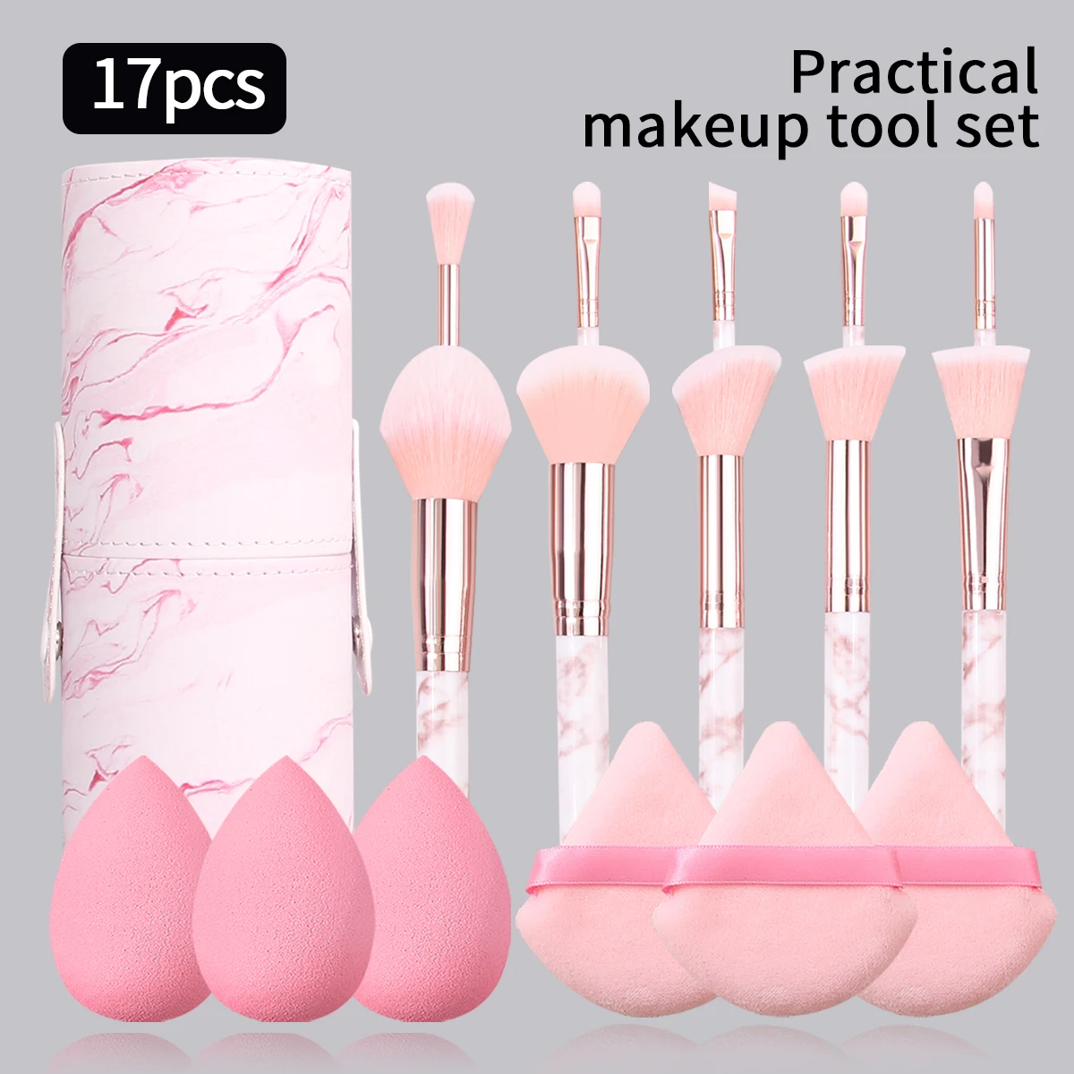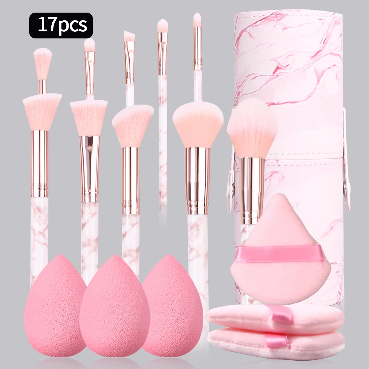 Home Store Beauty Products Makeup 17PCS pink portable set 10 makeup brush sets +6pcs triangular powder puff, makeup egg +1pcs makeup brush storage bucket