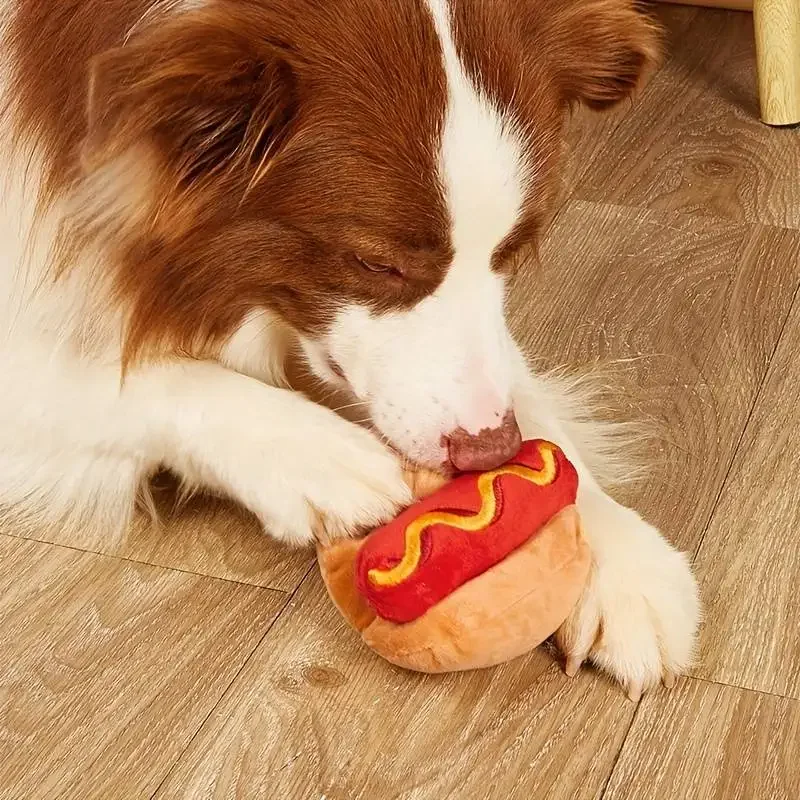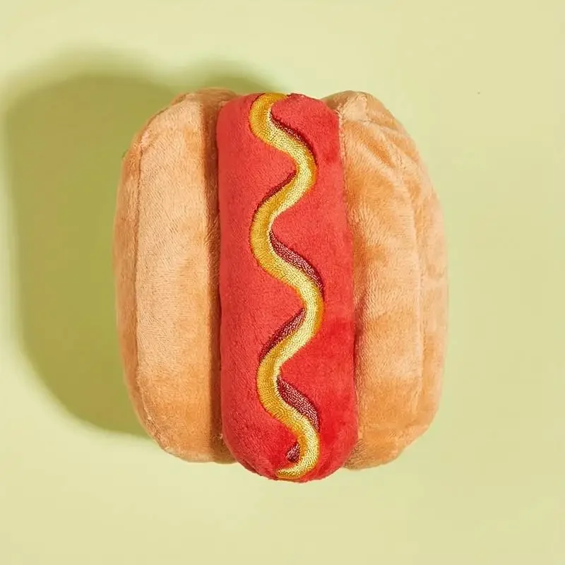 Plush-filled hot dogs are safe and fun for small and medium-sized dogs.Your dog will run around the house with it, lie next to it, and shake it. Great toys!