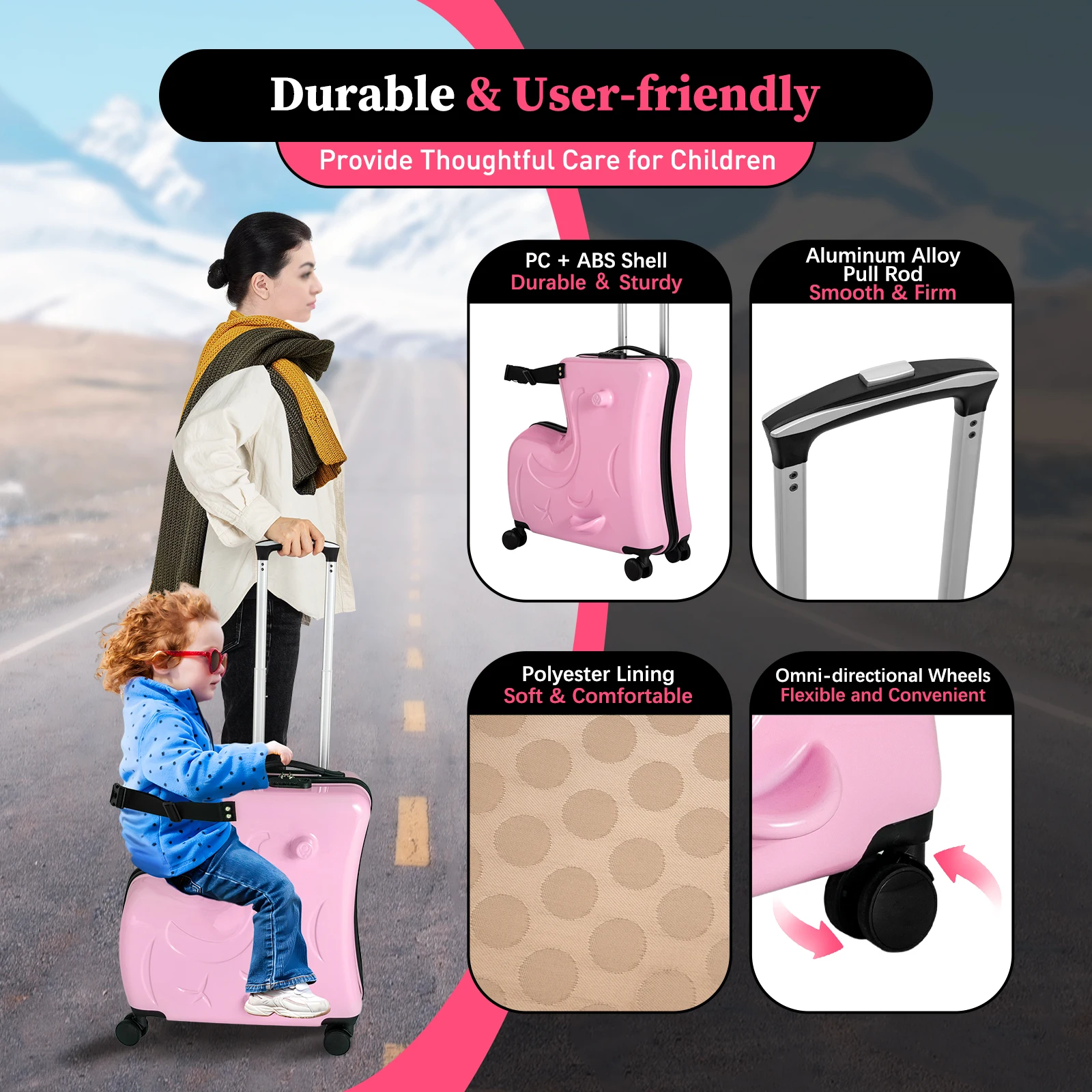Travel Companion: This multi-functional suitcase combines storage and fun cycling functions, providing convenient and fun solutions for traveling families. With its efforts, your child will have a wonderful time, and you can also save time and effort, making travel easier and more enjoyable!