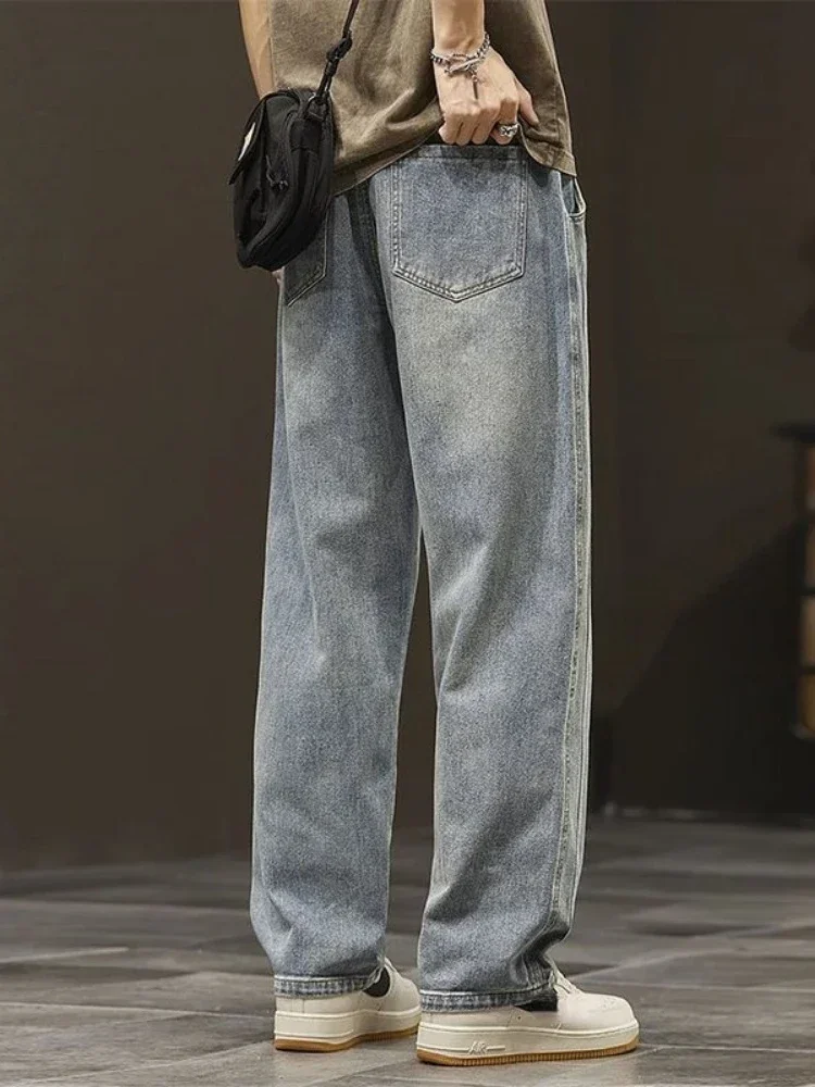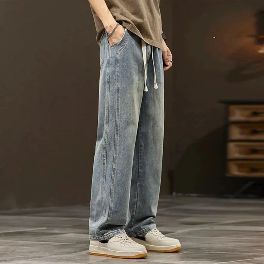 2024 Elastic loose straight jeans men wide legged denim men pants casual trousers Korean style men clothing jeans pants man