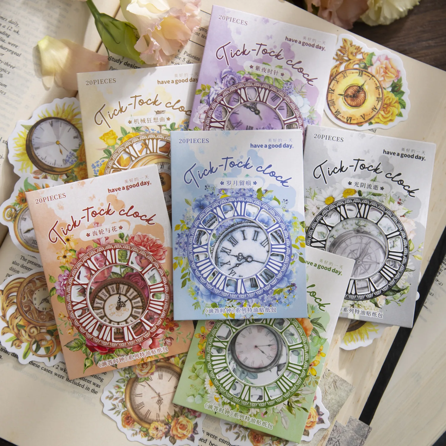 Home Store Stationery 20pcs/lot Kawaii Scrapbook Stickers ticking clock DIY Journaling Scrapbooking Supplies Decorative Stationery Sticker