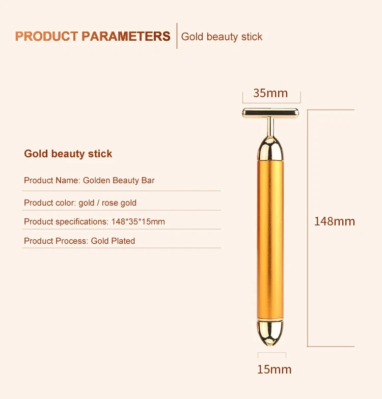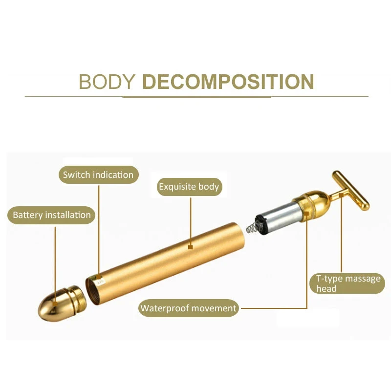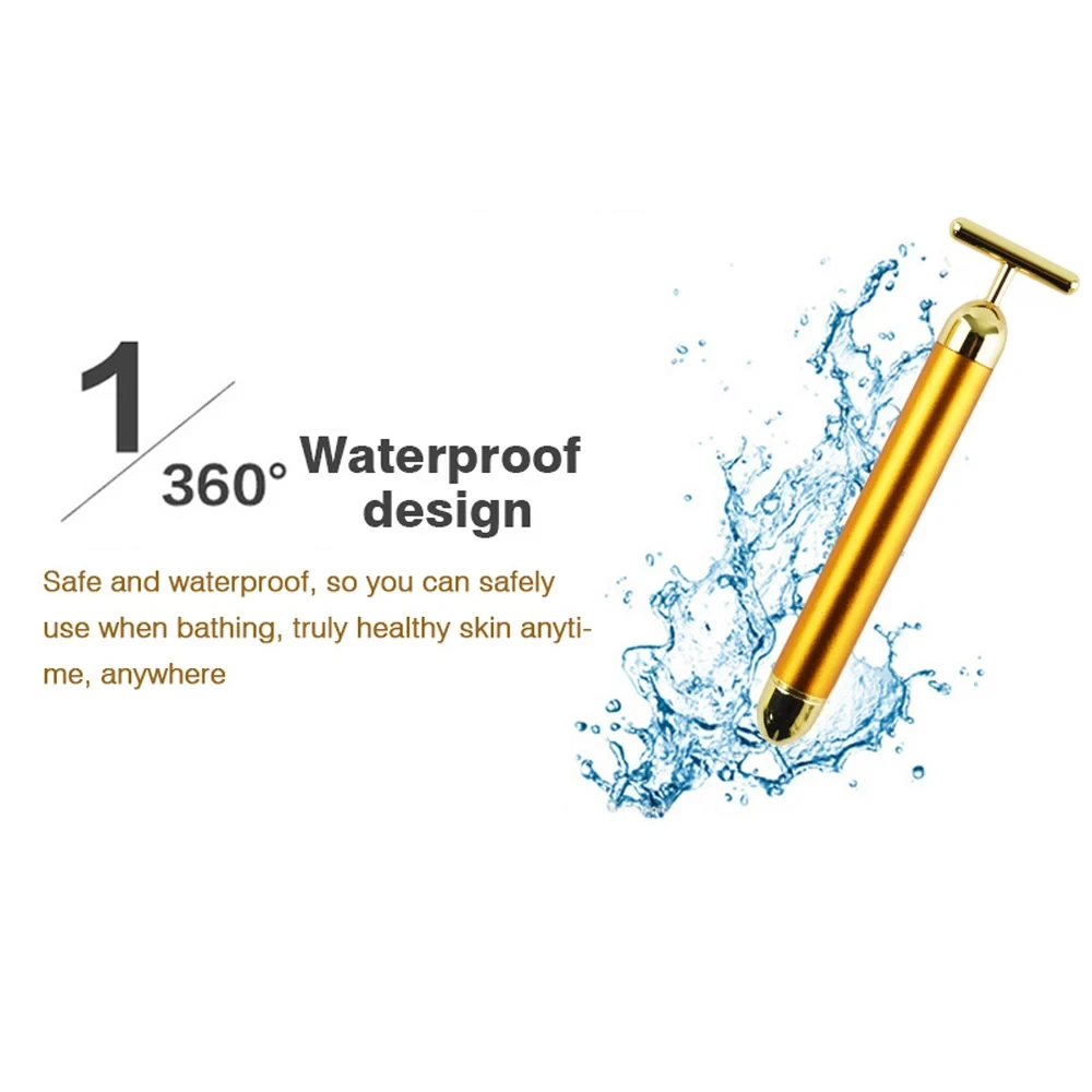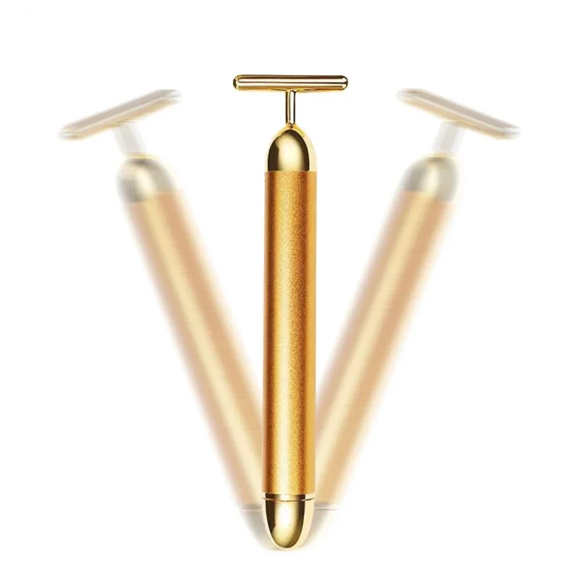 24k Gold T-Shape Vibrating Facial Roller Beauty Wand Face Slimming Vibrating Massager Firming Anti-Wrinkle Facial Skin Care Tool