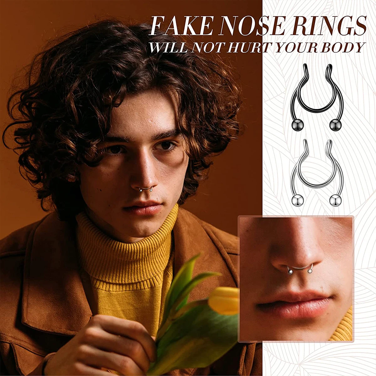 [Adjustable Size] The nose ring is 0.8mm-1.2mm thick, the size is suitable for most people, you can adjust the tightness according to your own preferences and needs, the unique design fully show your taste and personality.