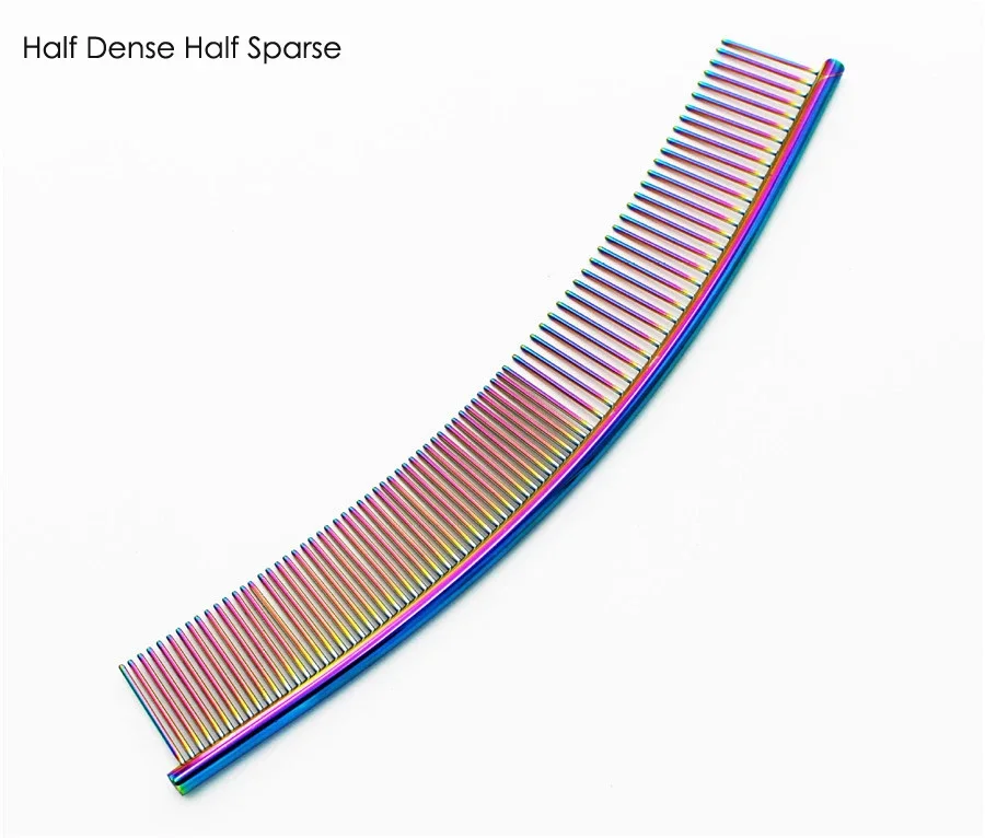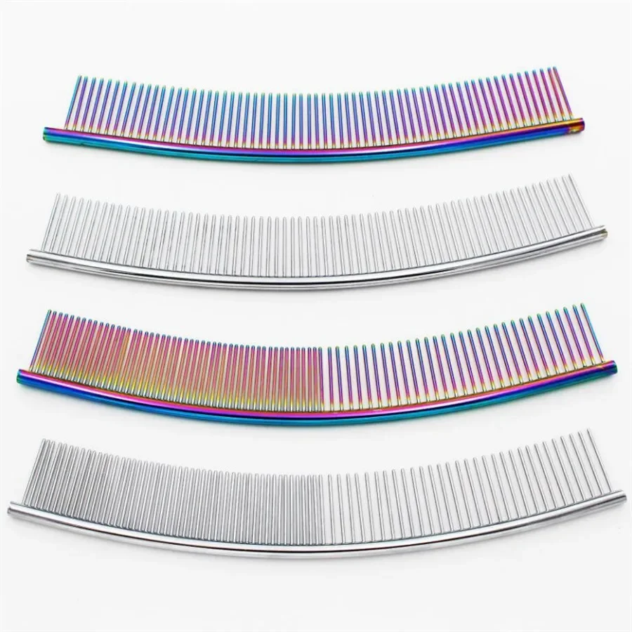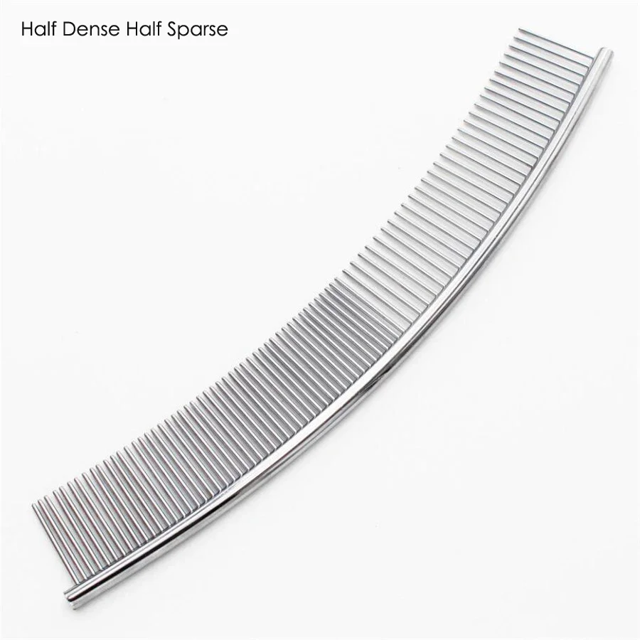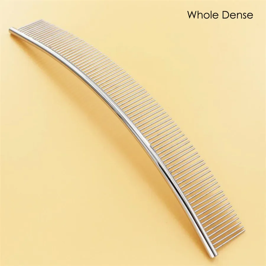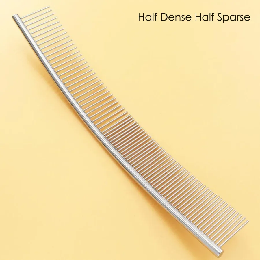 25cm Pet Curved Comb Stainless Steel Combs Professional Pet Grooming Comb Dense Sparse Teeth Dog Cat Cleaning Brush Open Knot