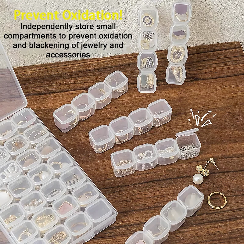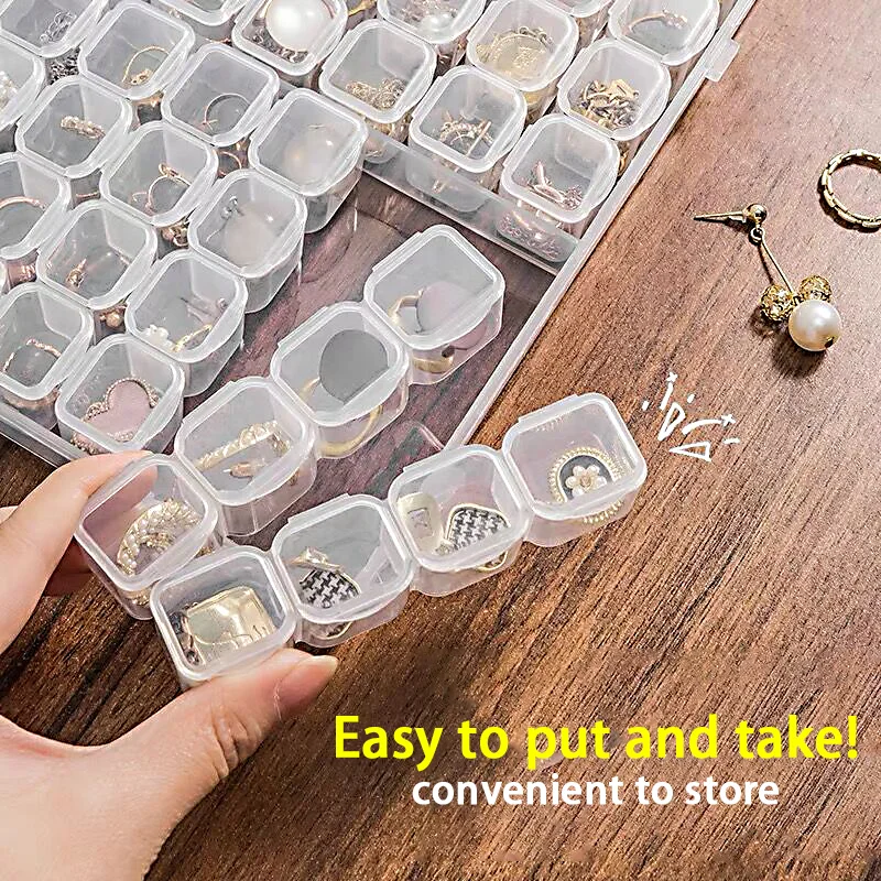 It is suitable for storing earrings, necklaces, beads, rings or other small accessories, nail art, makeup, pills and other products. It can be used as ordinary storage boxes for coins, ball pens, needles and other small objects; it can also be used as component boxes, parts, ICs Chip box etc.