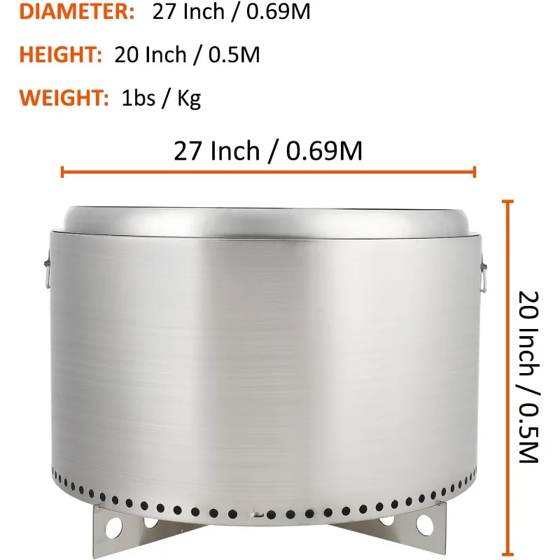 Home Store Fitness & Sports Outdoor gear 27 Inch Smokeless Fire Pit with Air Switch, Portable Outdoor Stainless Steel Firepit with Removable Ash Pan, Wood Burning Stove