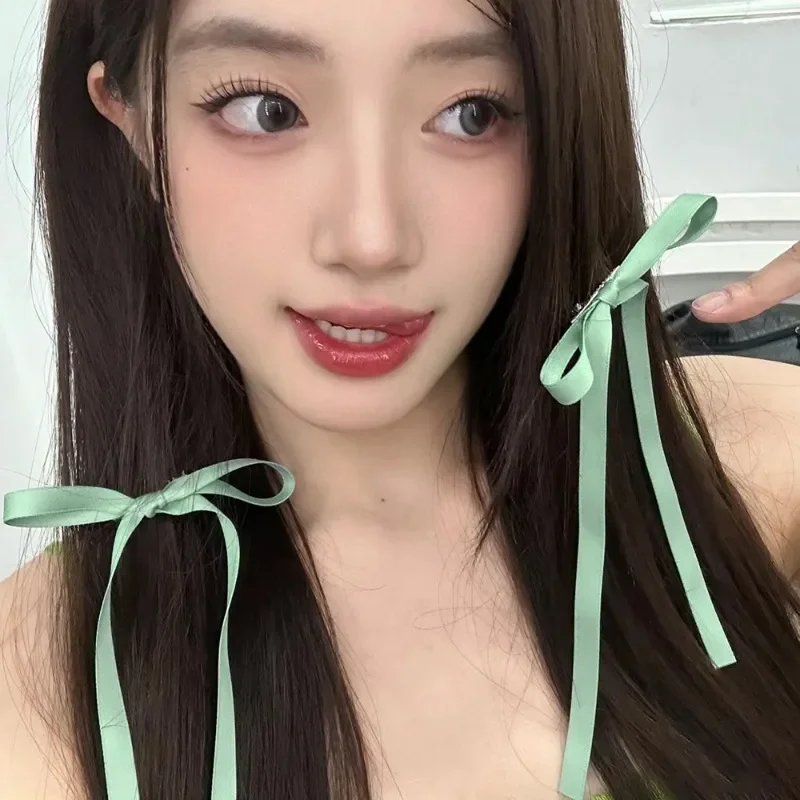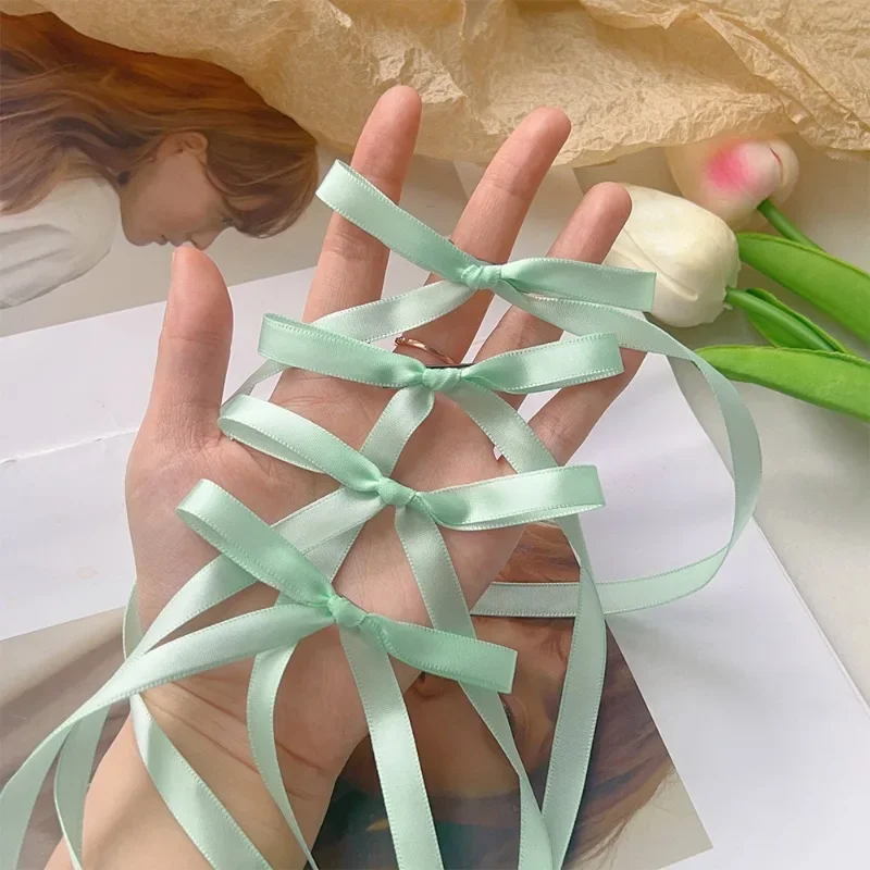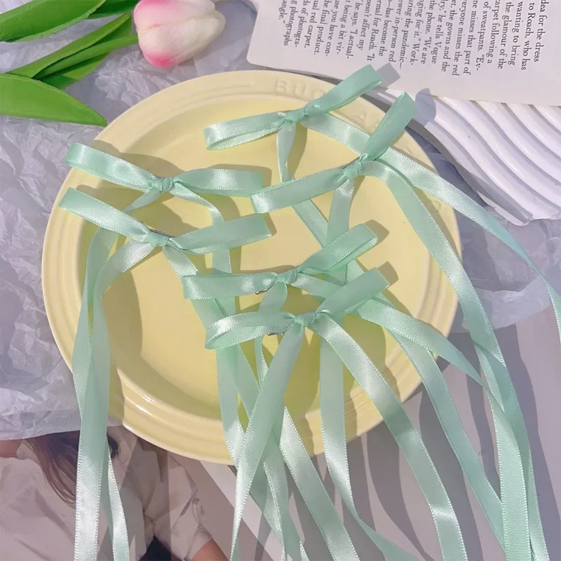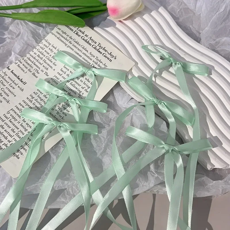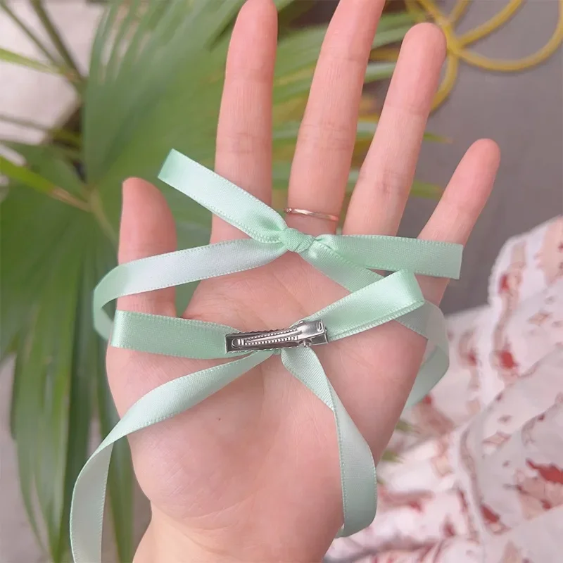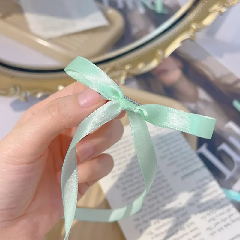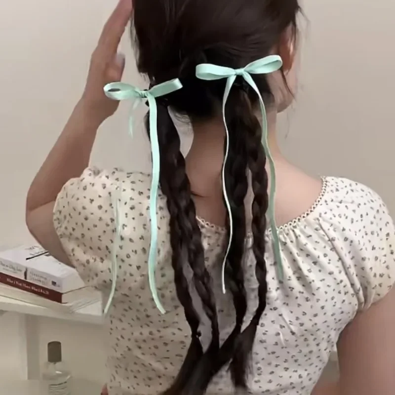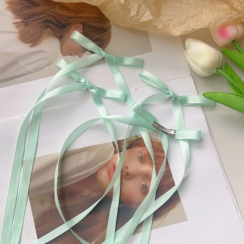 2Pcs/set Sweet Girls Mint Green Bow Ribbon Hair Clips Charming Elegant Hairpins Bunches Accessories Korean Side Clip Headwear