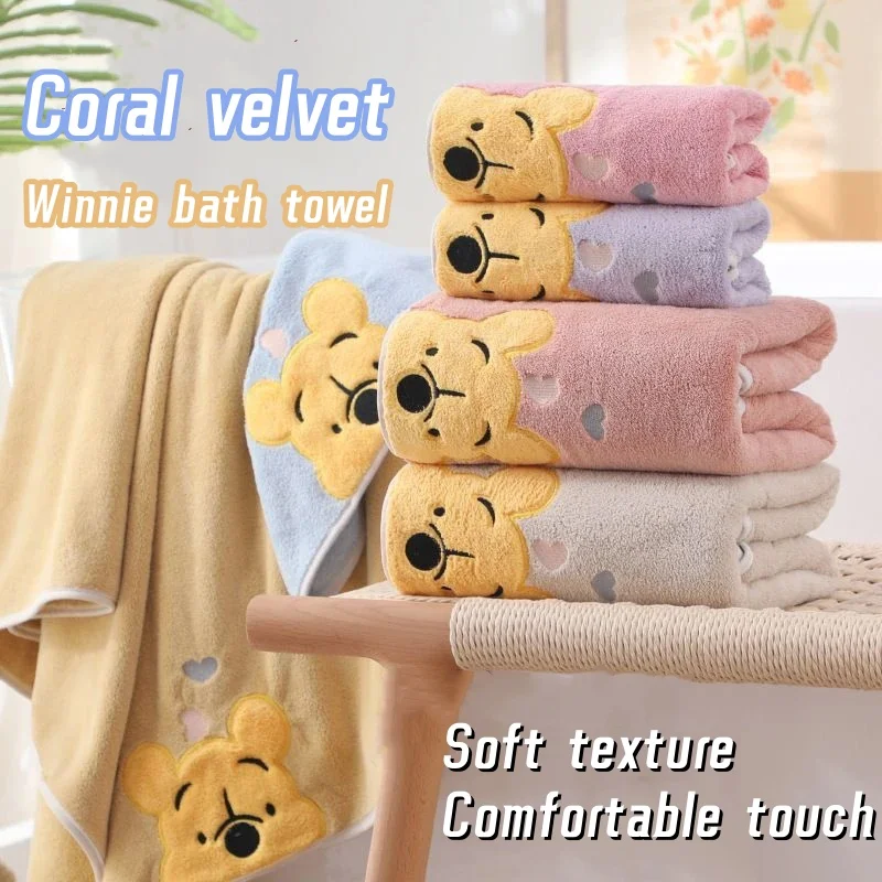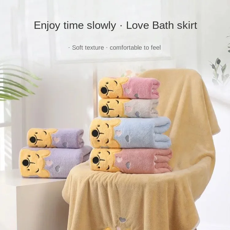 2Pcs Winnie Bear Towel Bath Towel Set Soft and Absorbent Coral Velvet Bath Towel Home Wash Towel Children's Cartoon Bath Towel quantity