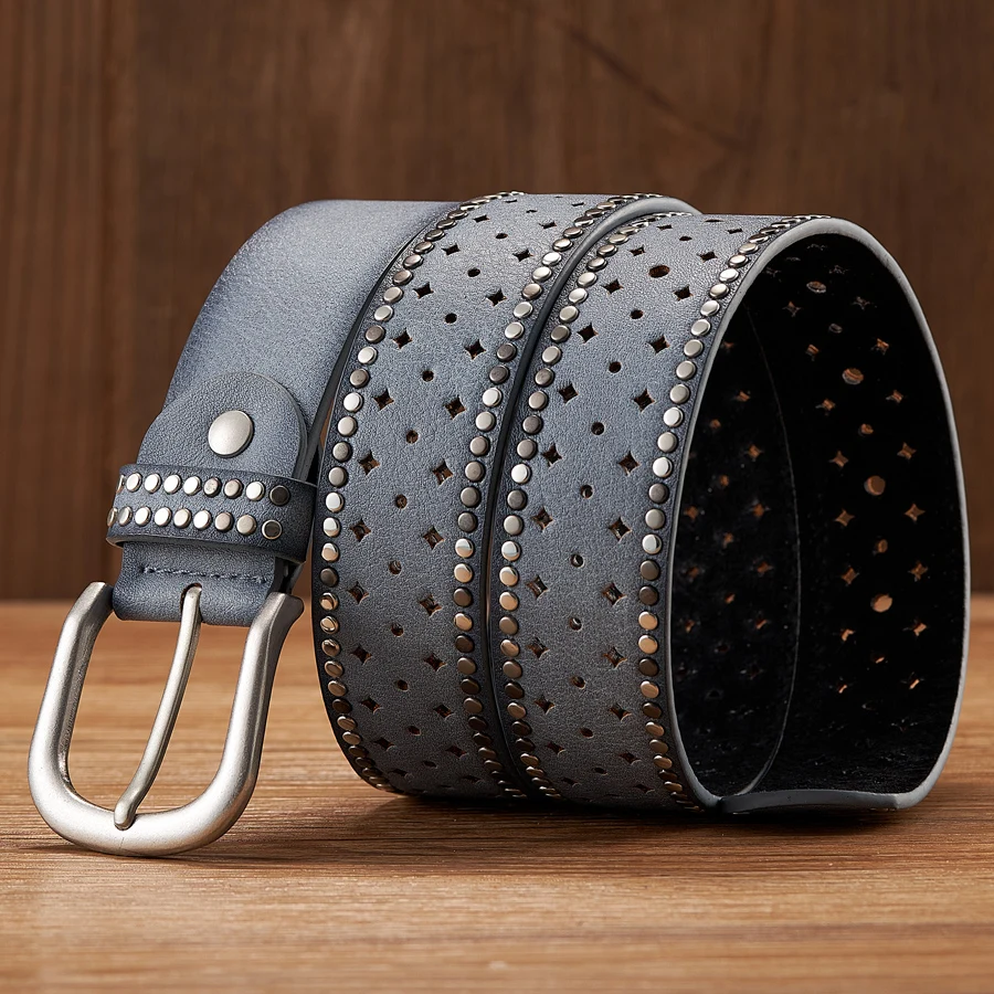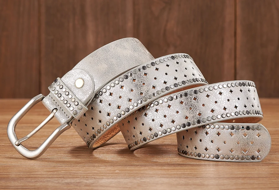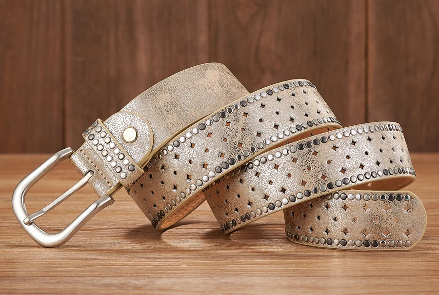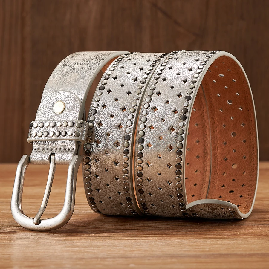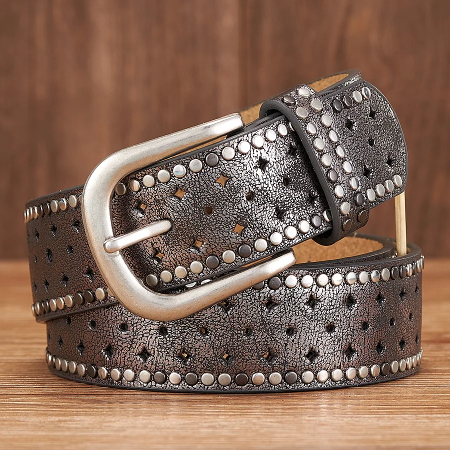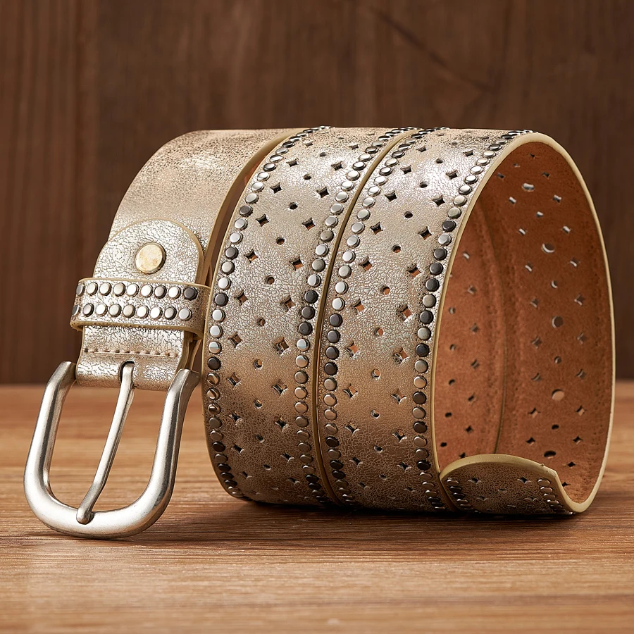 3.7CM Original Design New Vintage Lady Belt Handsome Hollow Out Rivet All-match Fashion Female Belts Quality Women Wide Belt