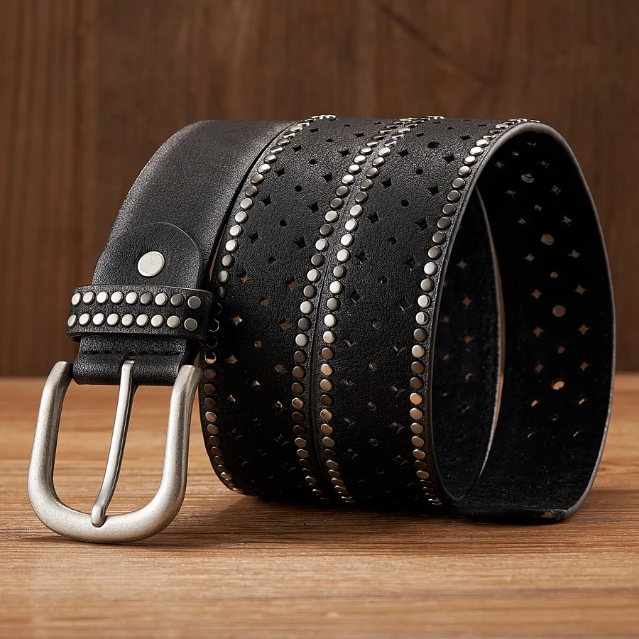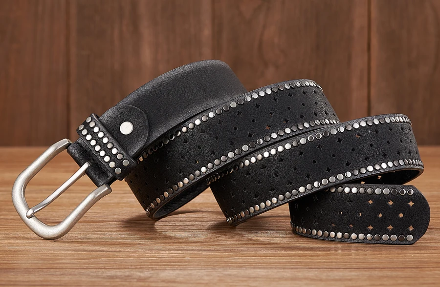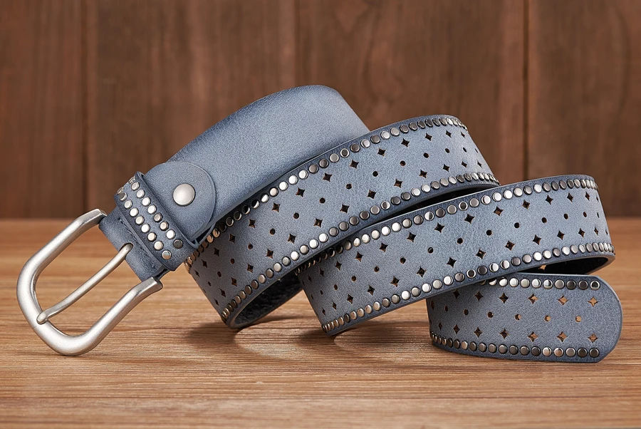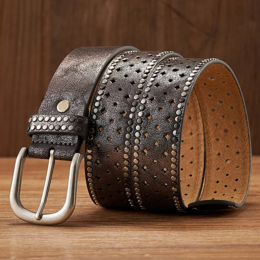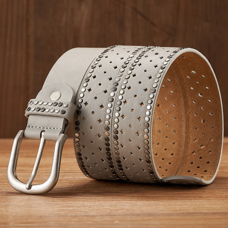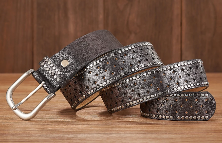 3.7CM Original Design New Vintage Lady Belt Handsome Hollow Out Rivet All-match Fashion Female Belts Quality Women Wide Belt
