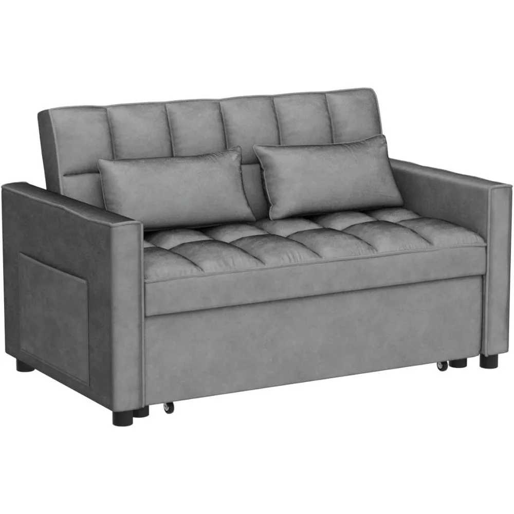 Home Store Home Decor Furniture 3 in 1 Modern Velvet Recliner Futon Sofa with Pullout Bed, Small Couple Seat Lounge Sofa, Living Room Furniture, Gray