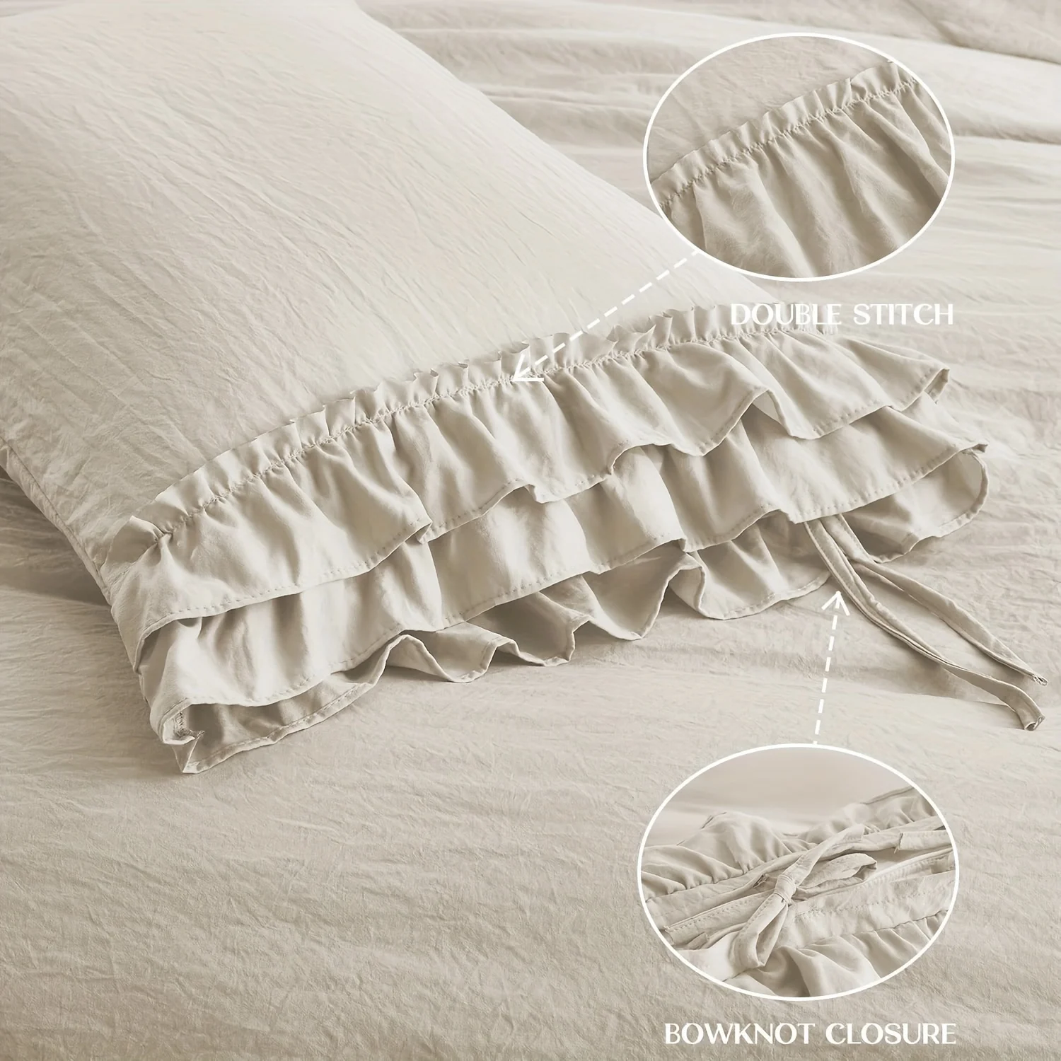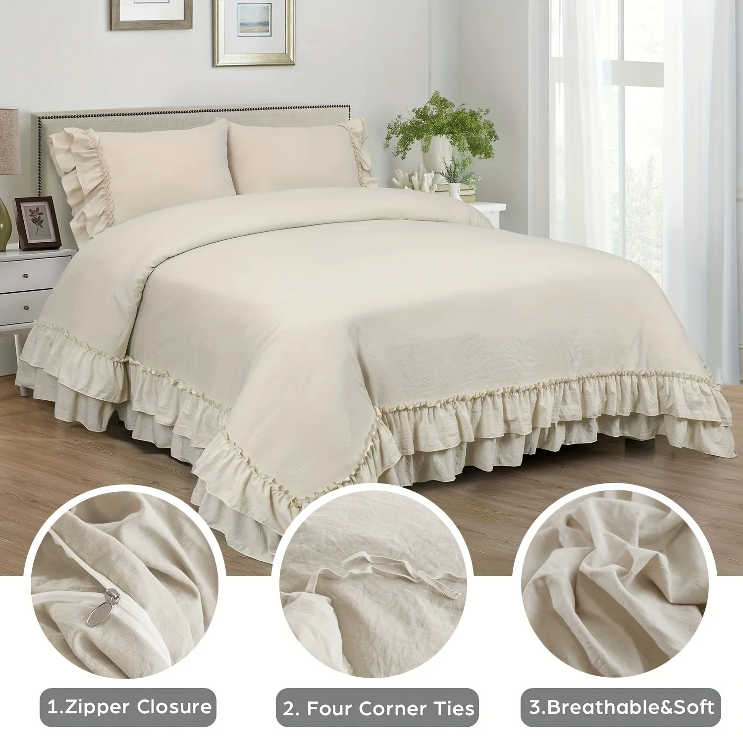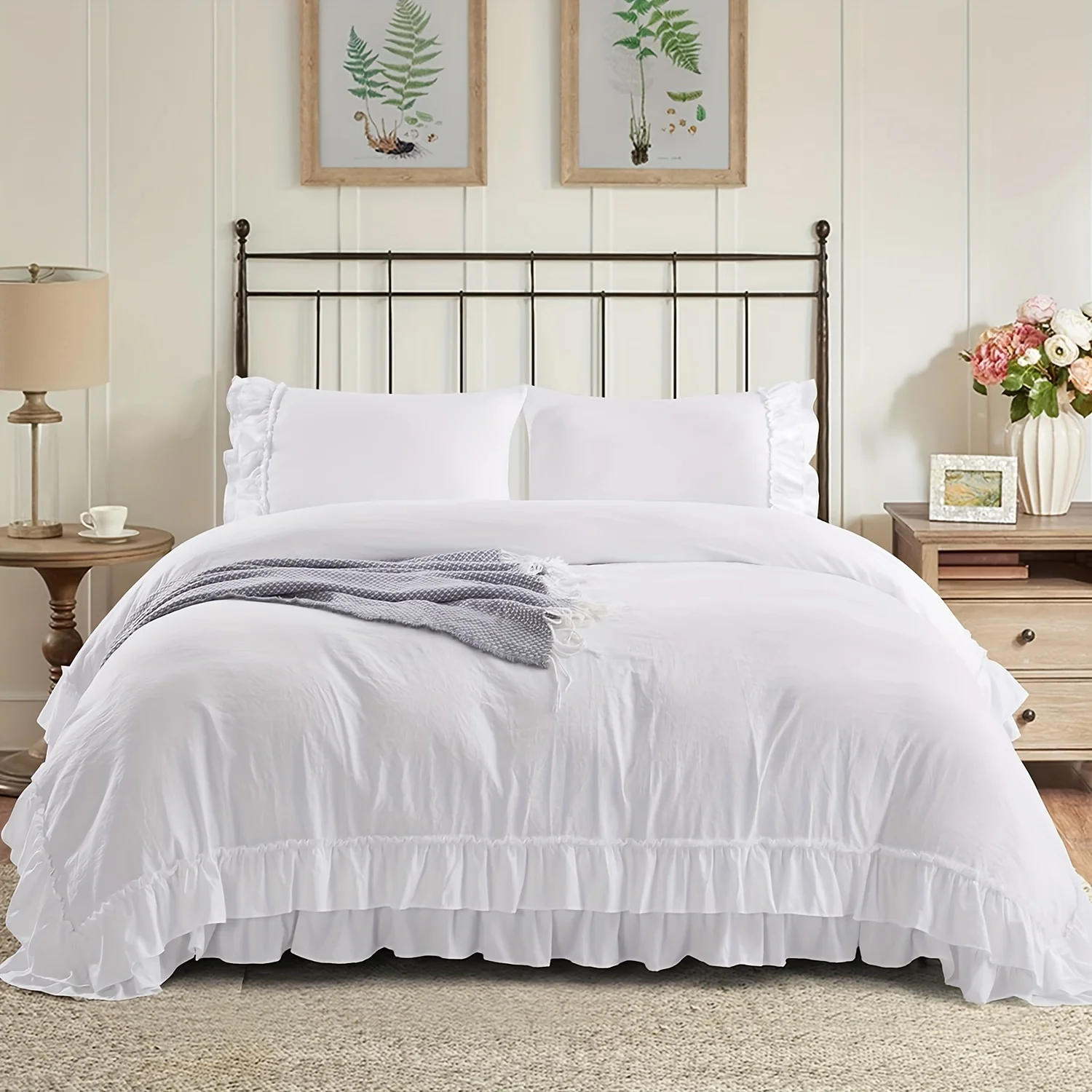 3-piece Bedding Sets Ruffle Lace Comfortable and Stylish Bedding for Any Bedroom Duvet Cover