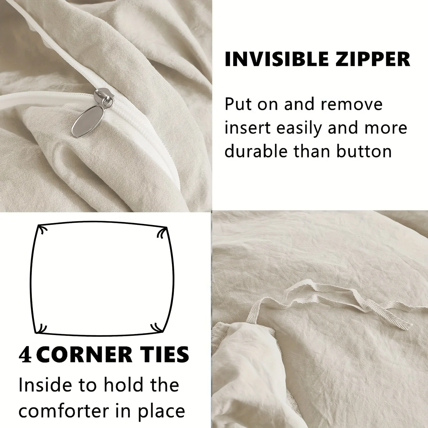100% Linen Duvet Cover Bedding Set, Cooling Duvet Cover with Soft,Breathable,Fluffy Cover (1 Duvet Cover,2 Pillowcases)