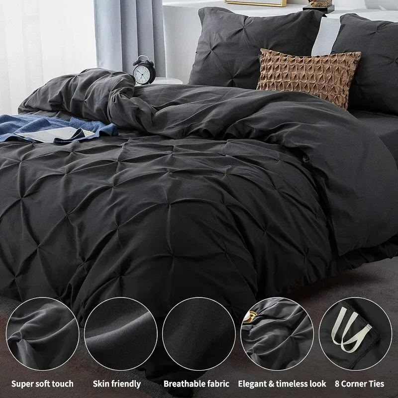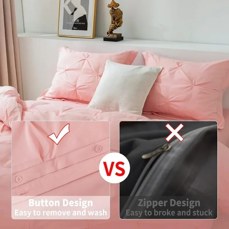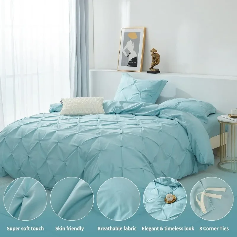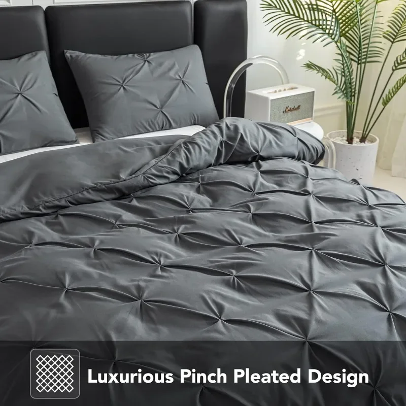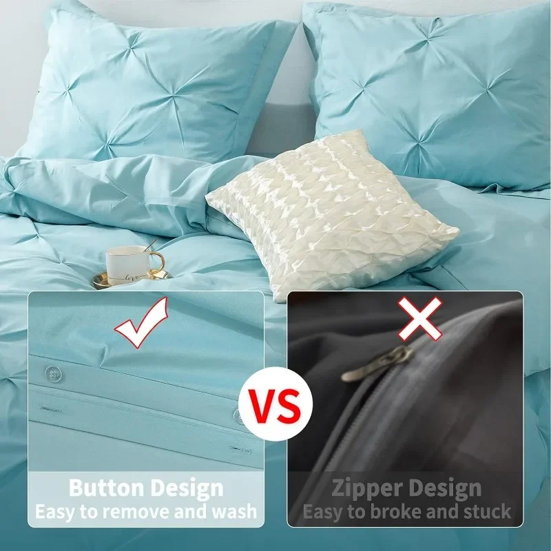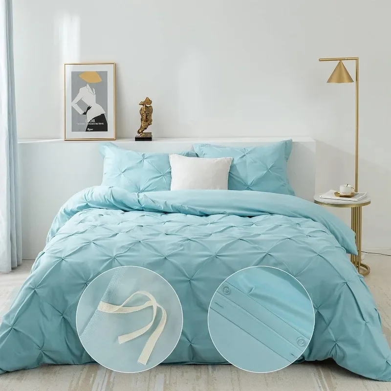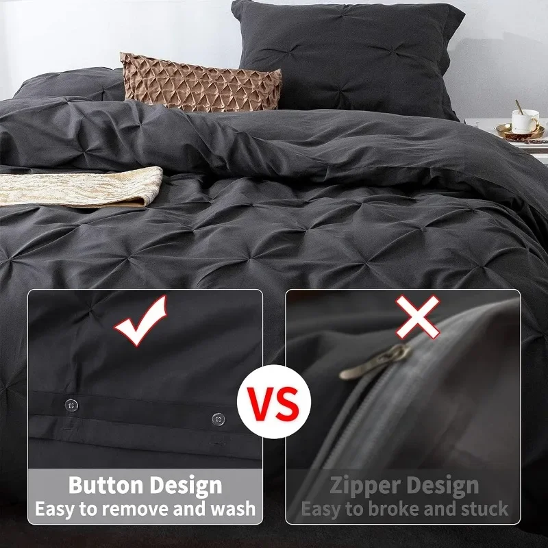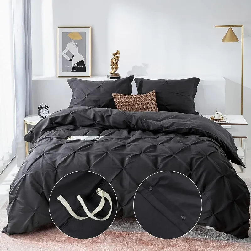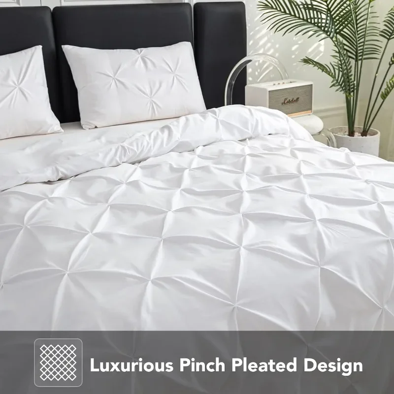 - Exquisite Workmanship- Comes with an invisible, hassle-free button closure, the microfiber duvet cover can put your comforter in and out conveniently. In addition, 8 corner ties to keep the duvet fixed in place. It makes this pinch pleat comforter cover a great addition to any bedroom.