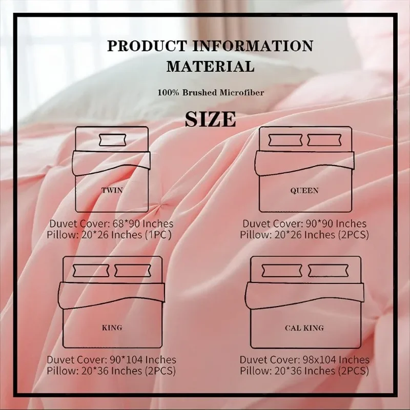 - High Quality Materials- The pintuck duvet cover was crafted from 100% brushed microfiber, the advanced brushed processing not only brings you ultimate softness, but also ensures fade resistance and wrinkle-free. It’s breathable to keep you cool in the summer and warm in the winter.