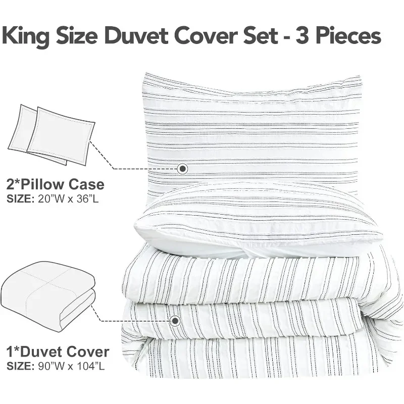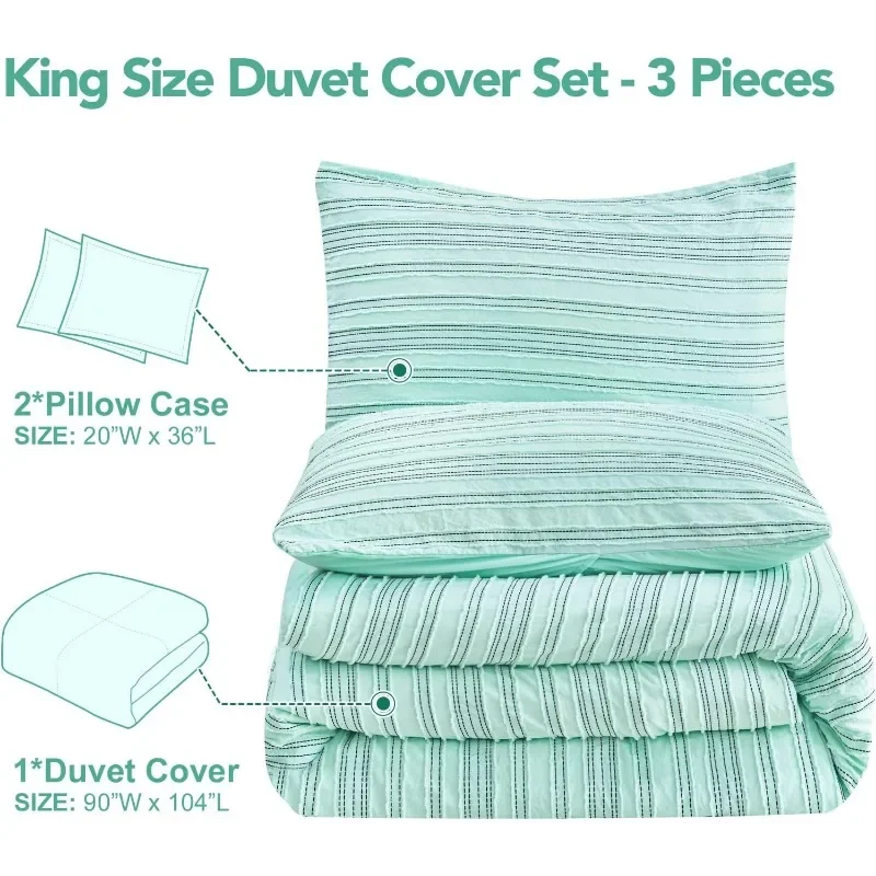 - Package Includes – The King textured duvet cover set comes with 1 piece of Duvet Cover (90″W x 104″L); 2 piece of Pillow Shams(20″W x 36″L). Note: Duvet/comforter inside is not included, needed to be purchased separately.
