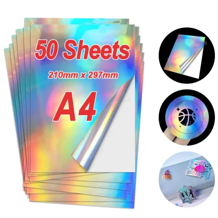 10/50 Sheets Holographic Printable Vinyl Sticker Paper Matte/Glossy/Transparent/Silver/Gold Adhesive Sticker for Inkjet Printer $4.96 – $56.14