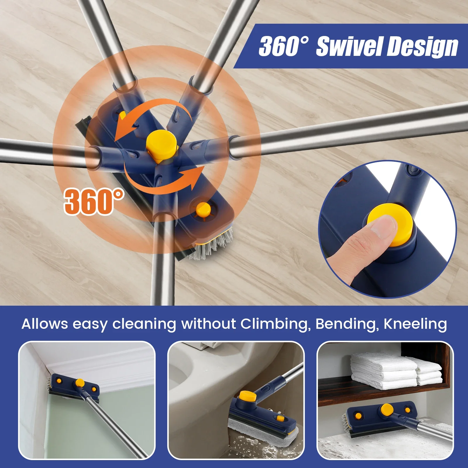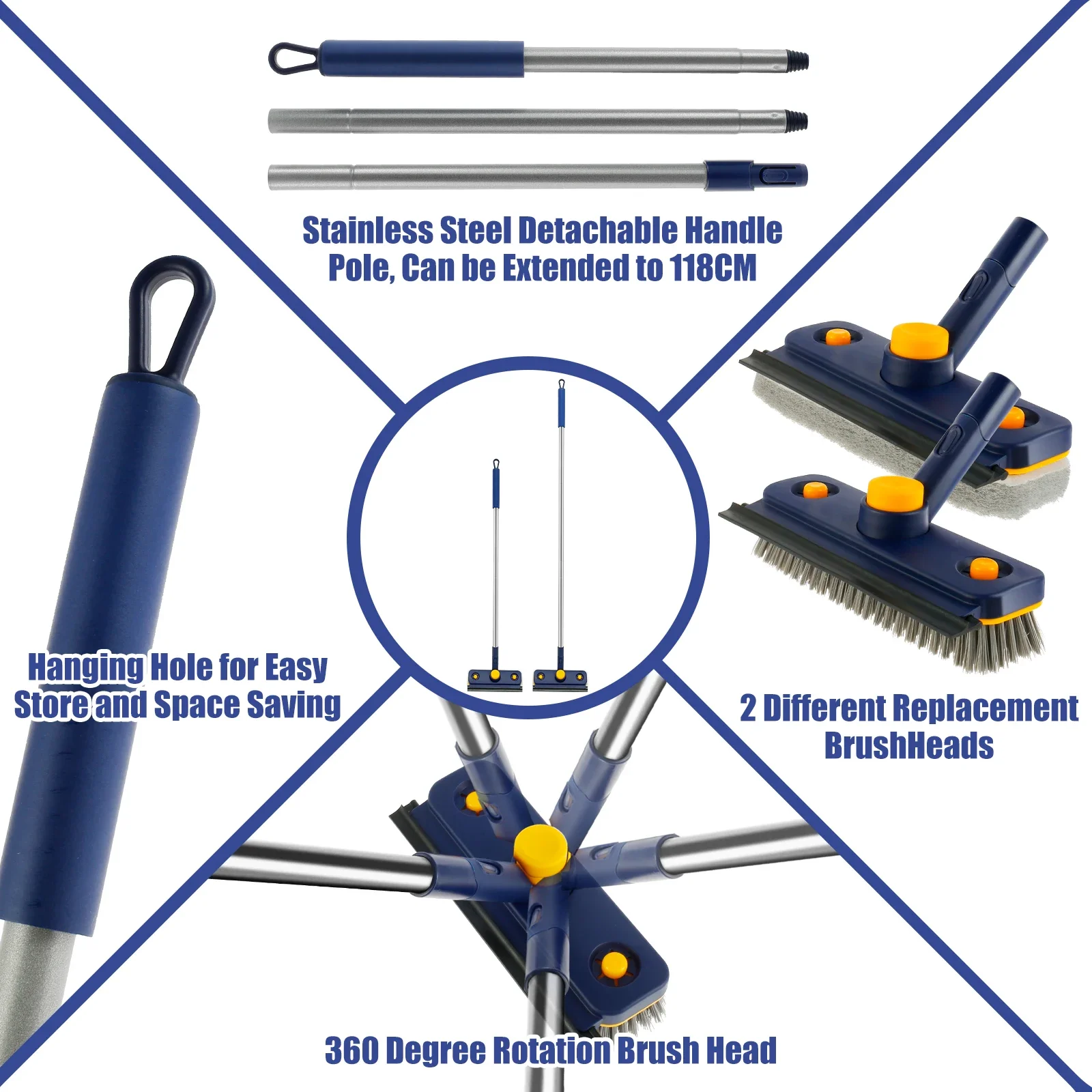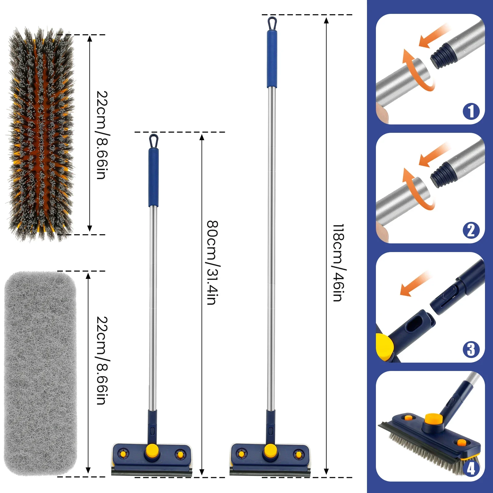 [Ergonomic Design Ensures Cleaning Without Dead Corners] The brush head can rotate 360 degrees, so you can easily change the angle to clean any corner anywhere. The ergonomic design of the angle between the brush head and the handle makes it more convenient to use different bending posture and less labor intensive to use. The three-section handle can be spliced to add the length of the handle up to 46 inches, making it easy for both children and adults to use for deep cleaning of narrow areas and corners.