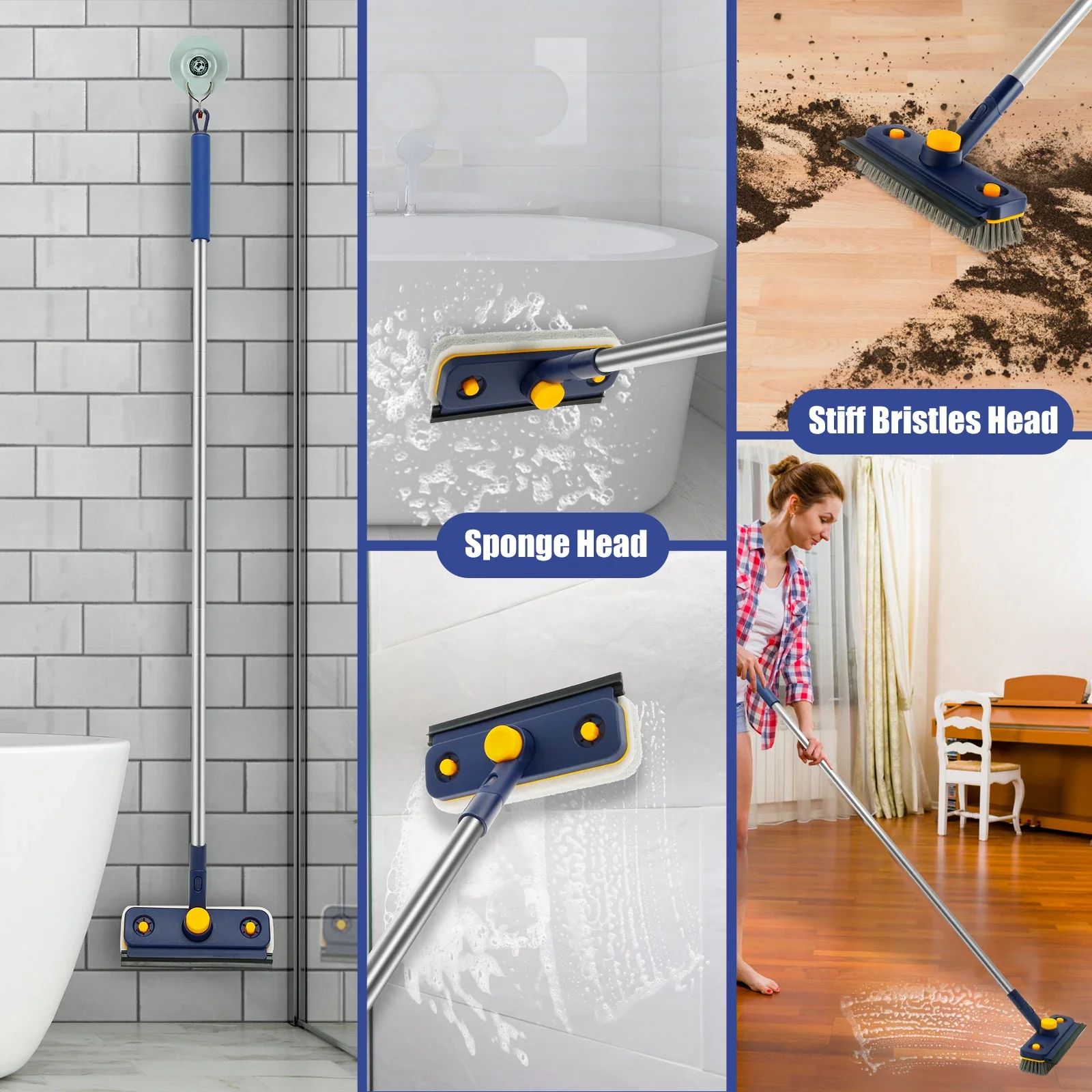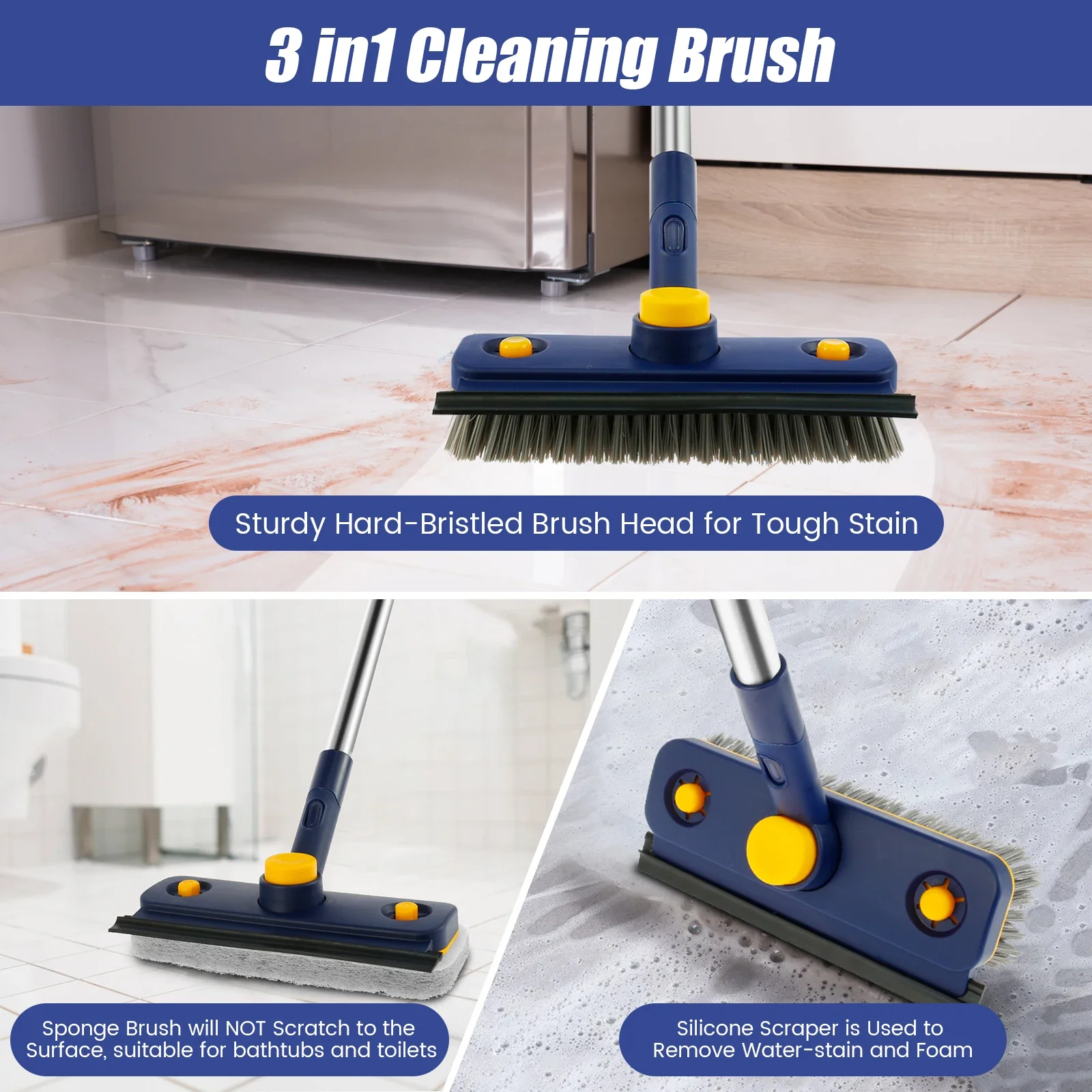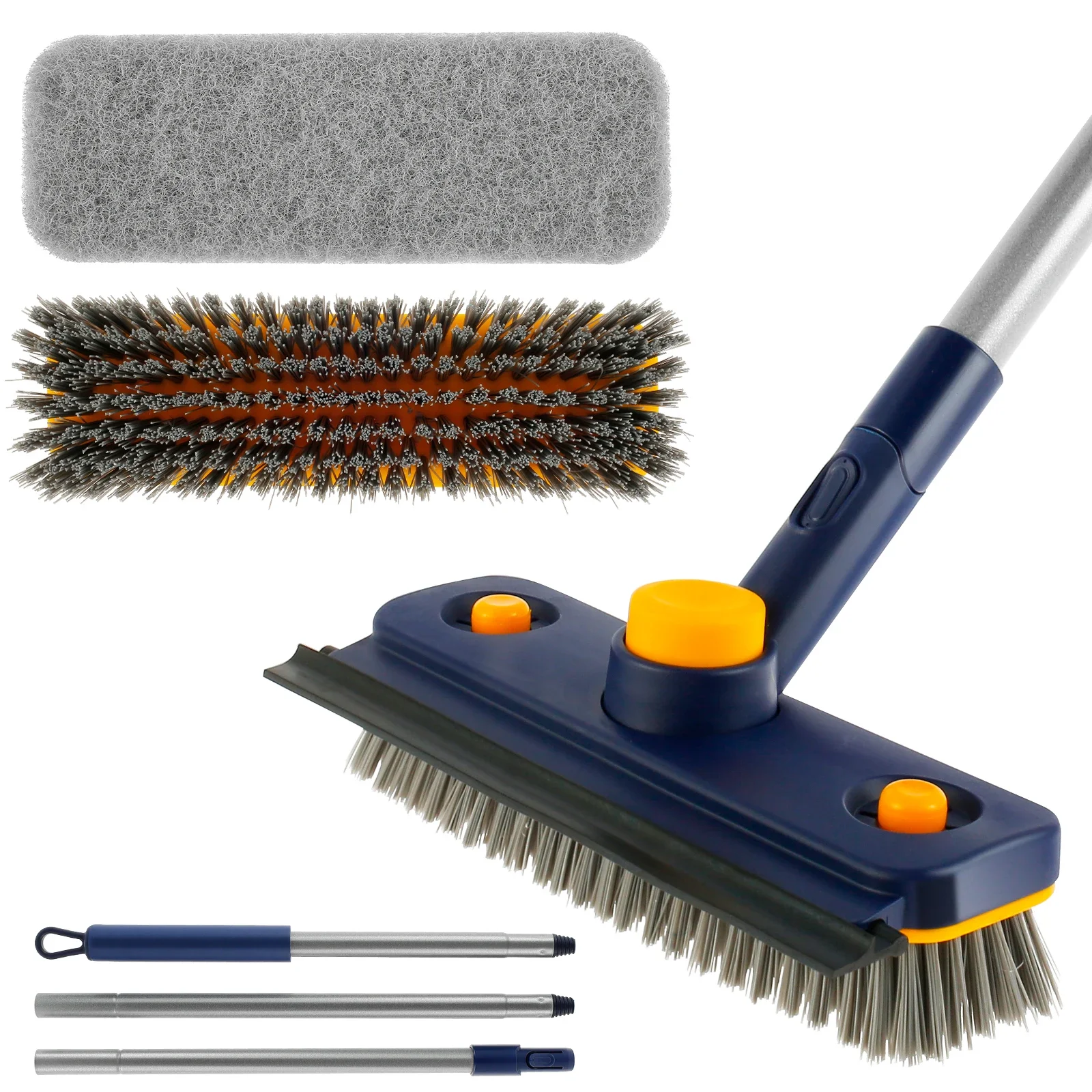 [3 in 1 Scrubber] This long handle brush comes with a stiff bristle brush and a sponge brush, along with a wiper strip on the support plate of the brush head. The stiff bristle brush can easily remove stubborn stains, the sponge head can gently clean without damaging glazes, and the wiper strip can effectively remove water, meeting your multiple cleaning requirements and improving effectiveness when you doing housework.