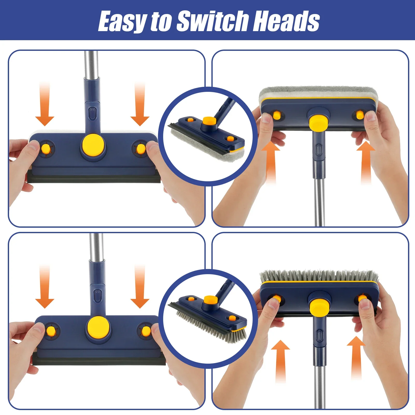 [Widely Application] With interchangeable brush heads, this long handle brush is perfect for cleaning bathrooms, tub tile, glass, floors, walls, windows, sinks, countertops, skirting boards, ceilings and tight spaces, keeping your house clean and tidy.