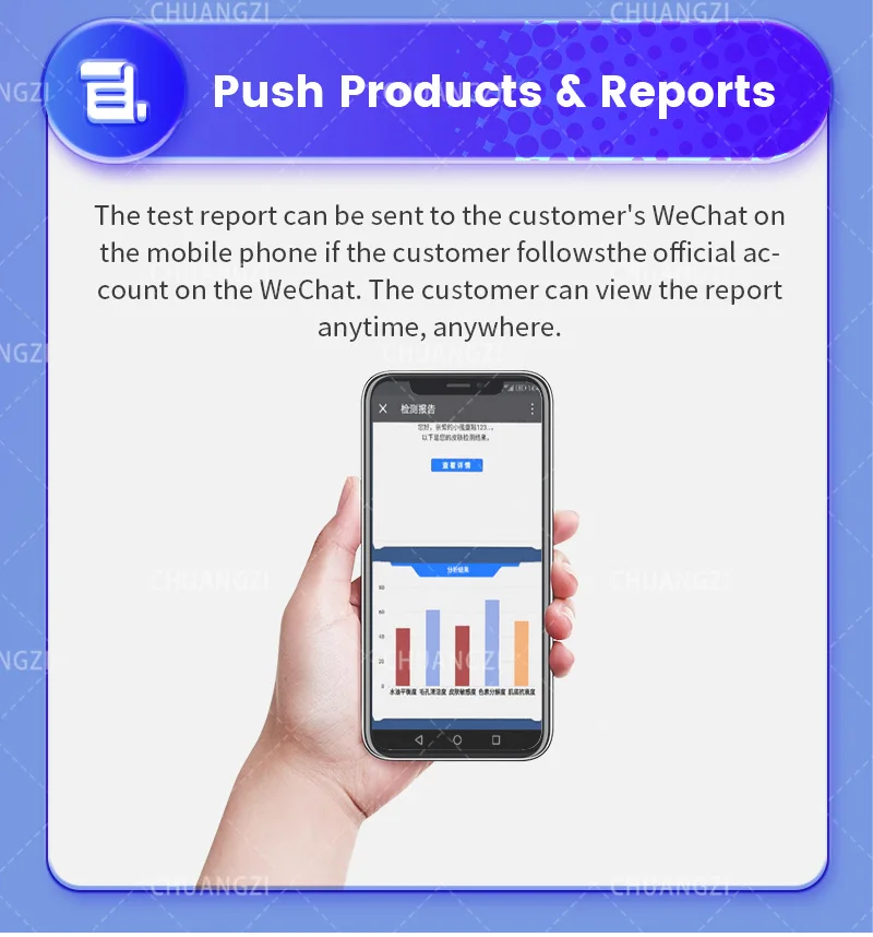 • Feature: Skin Wrinkle analysis, Pigmentation analysis, Acne analysis, Detect Skin Moisture, Skin Age Tester
