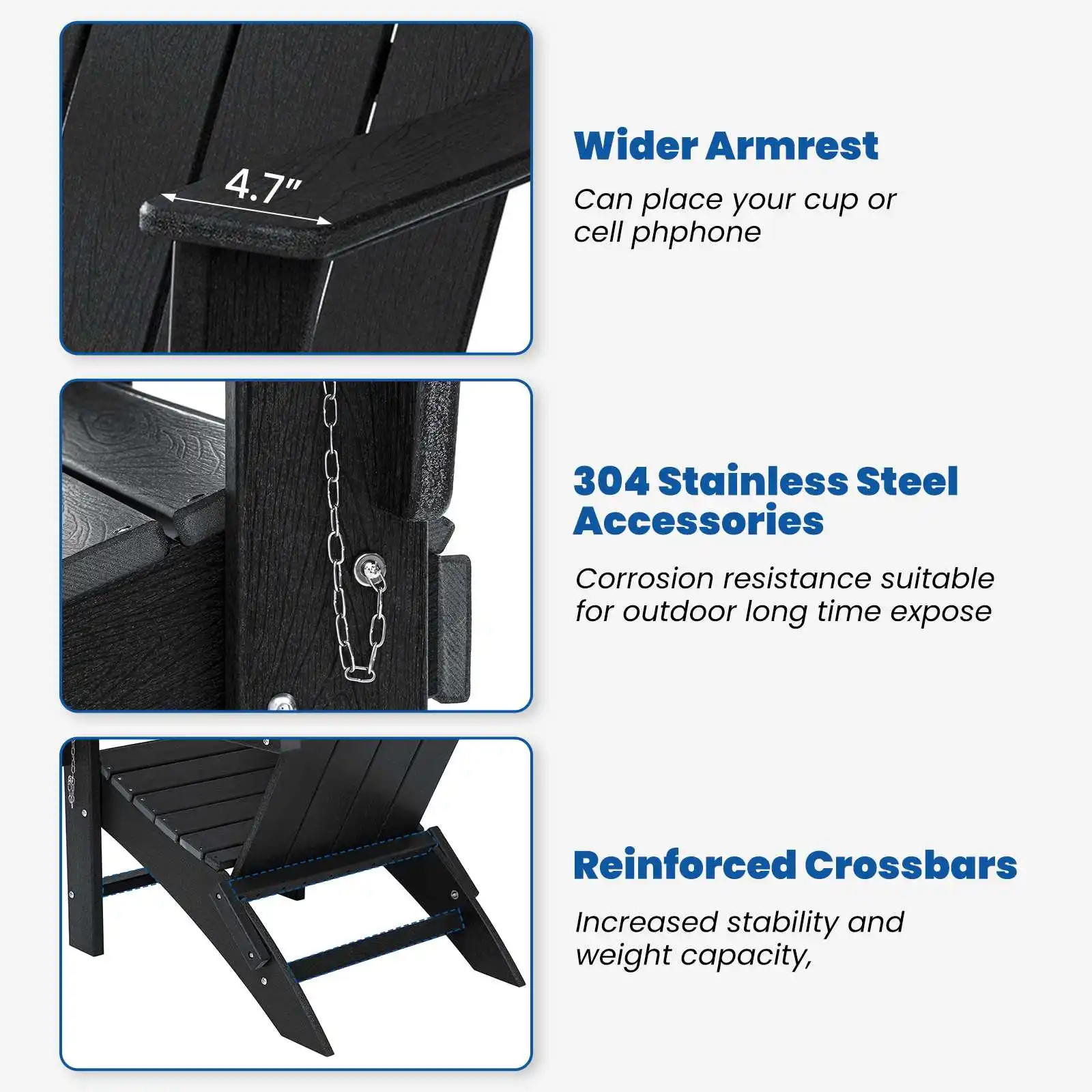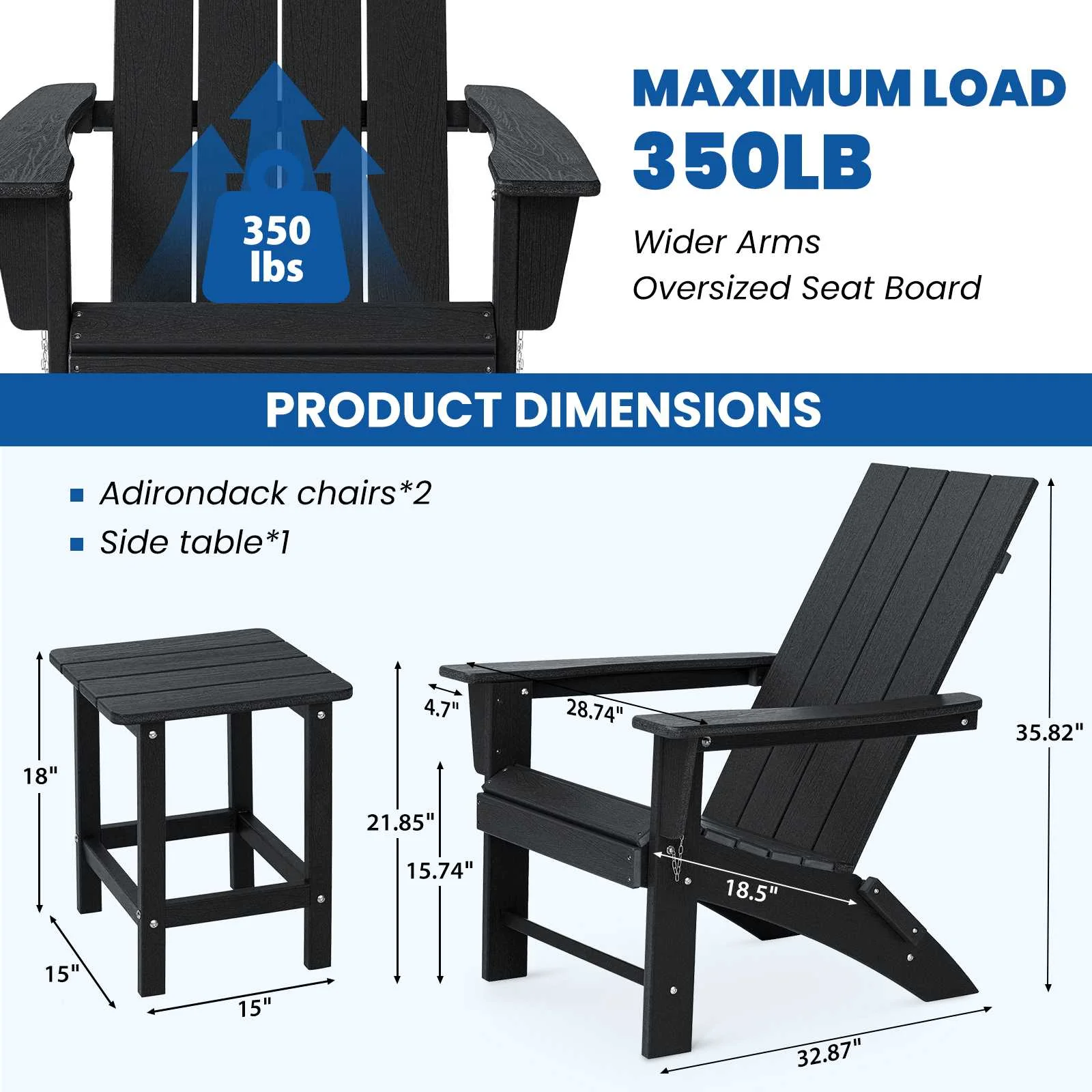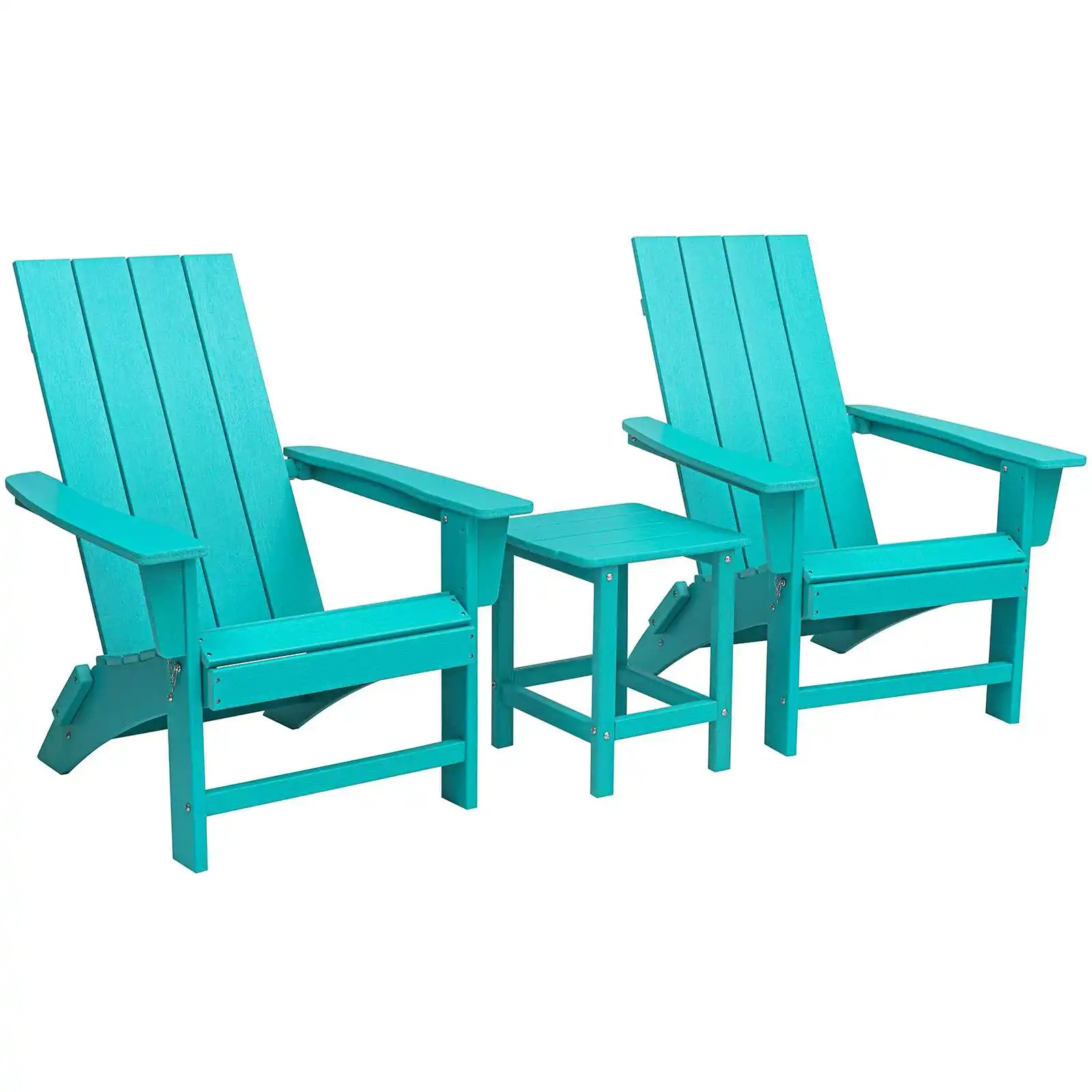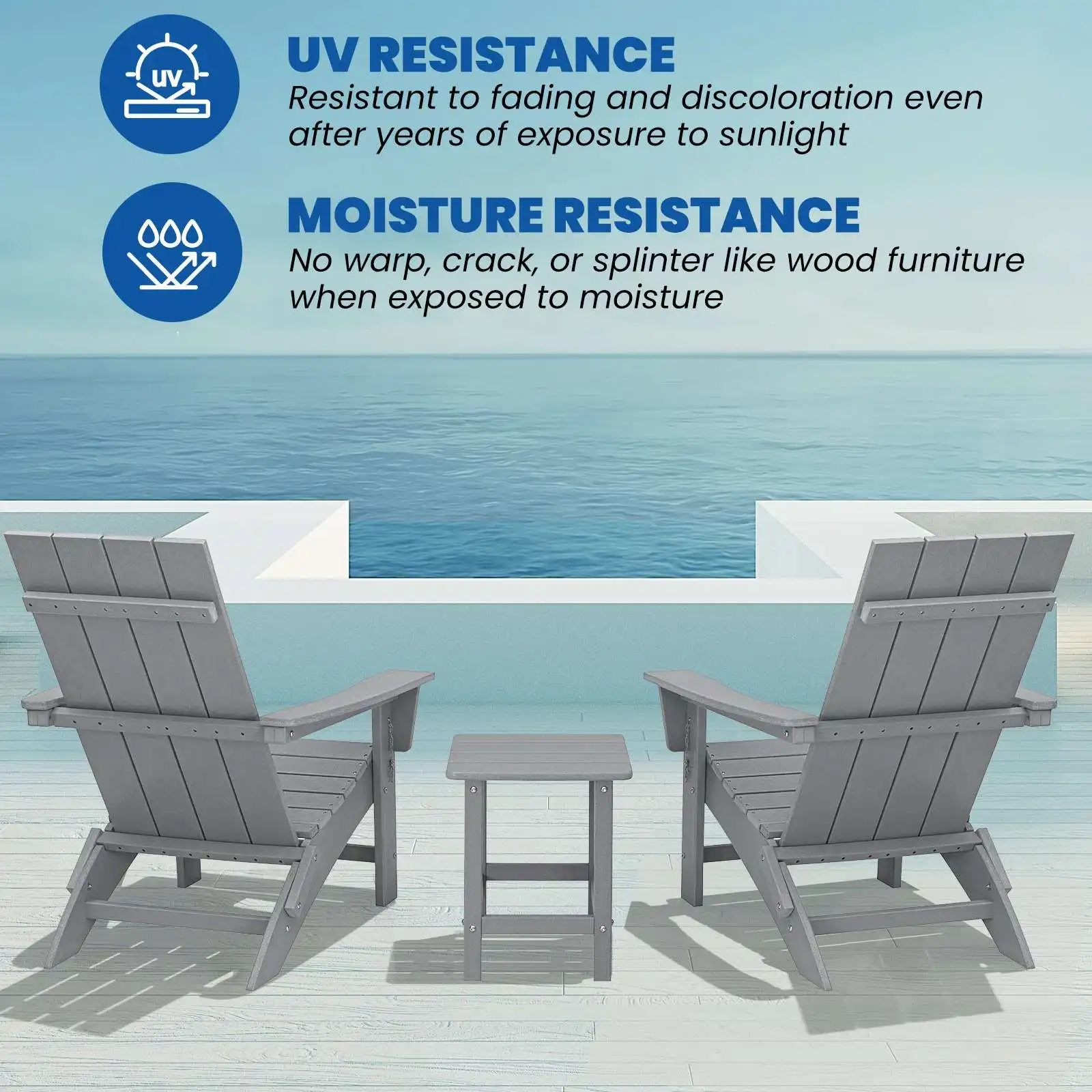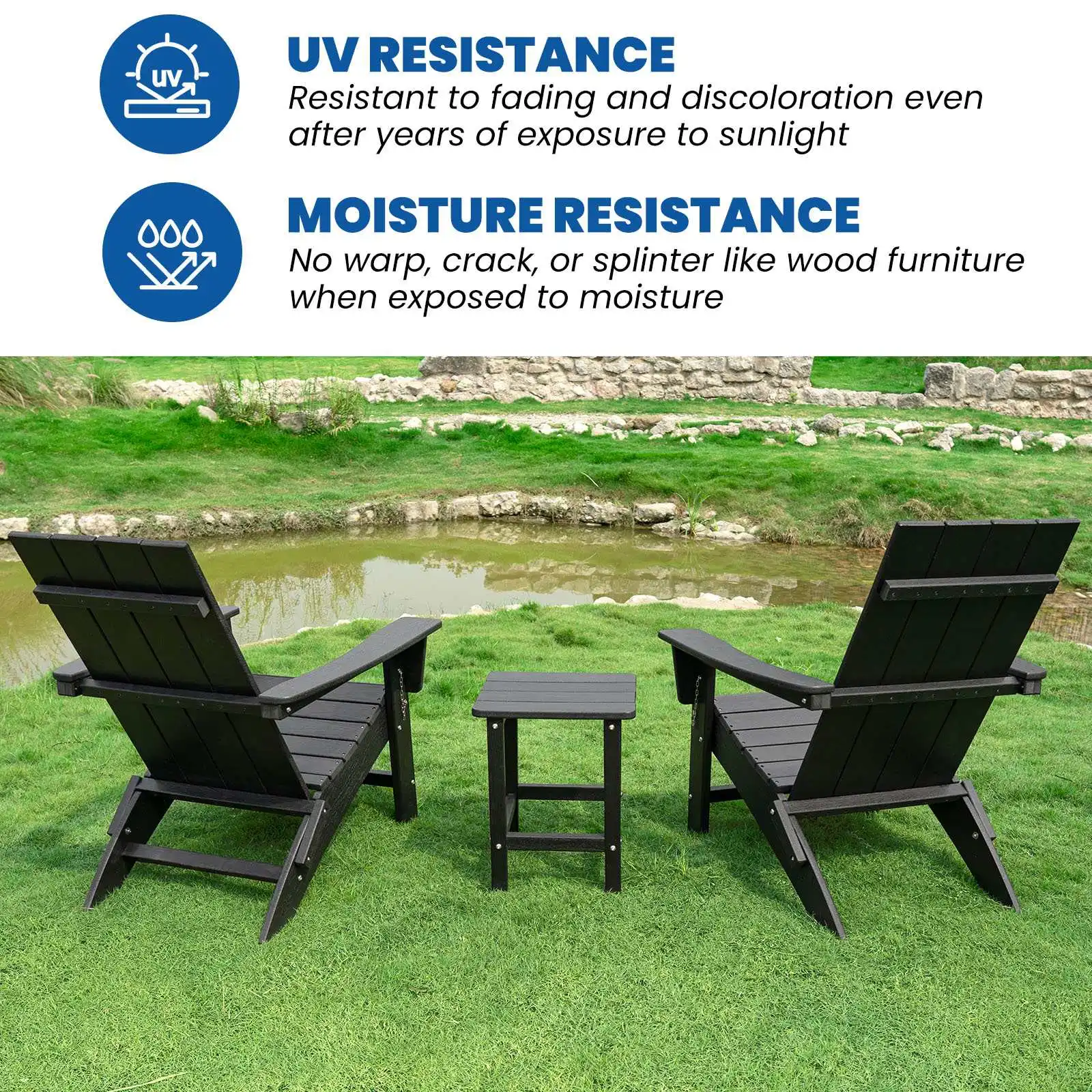 3PCS Foldable Adirondack Rocking Chair Outdoor Furniture Weatherproof Patio Poolside Garden HDPE All-Weather Side Table