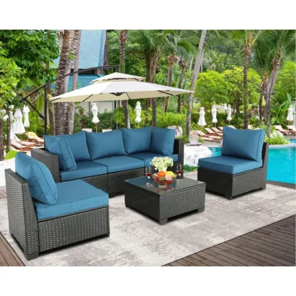 Ppatio furniture set (peacock blue)-outdoor PE rattan Wicker sectional with tempered glass table $557.28 – $668.73