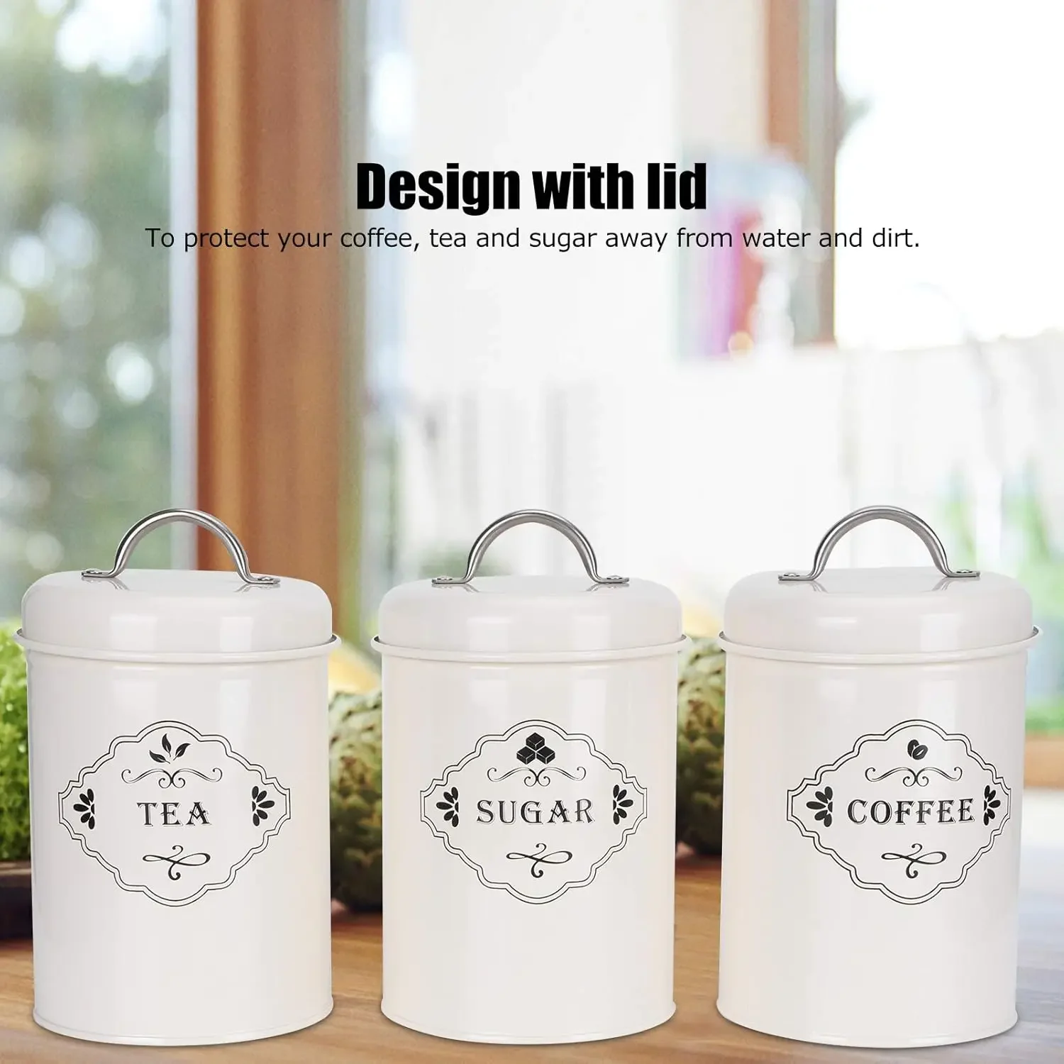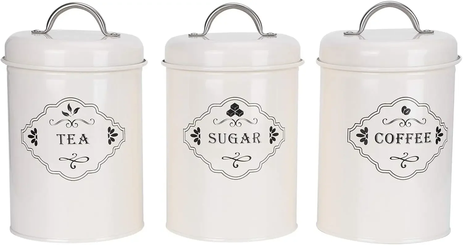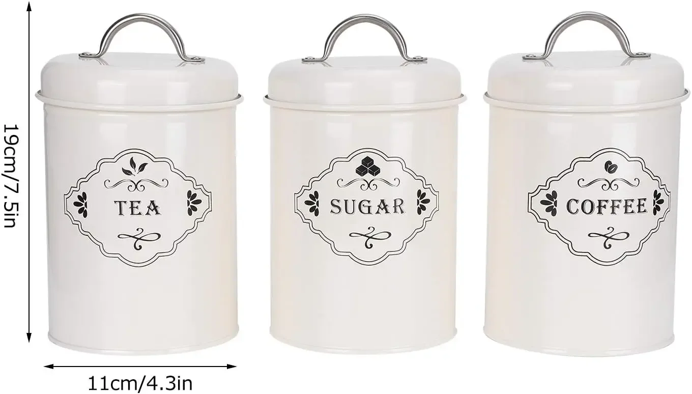 - This 3pcs set allows you to store tea, coffee and sugar conveniently without taking up too much space in the kitchen.