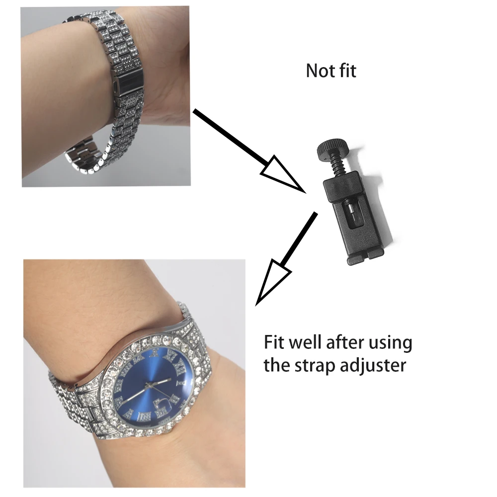 Home Jewelry and Watches 3pcs Men’s Silver Watch Set Hip-hop Punk Inlay Diamond Watch+Cuban Chain+Bracelet Comes With Strap Adjuster Stylish Jewelry Gift