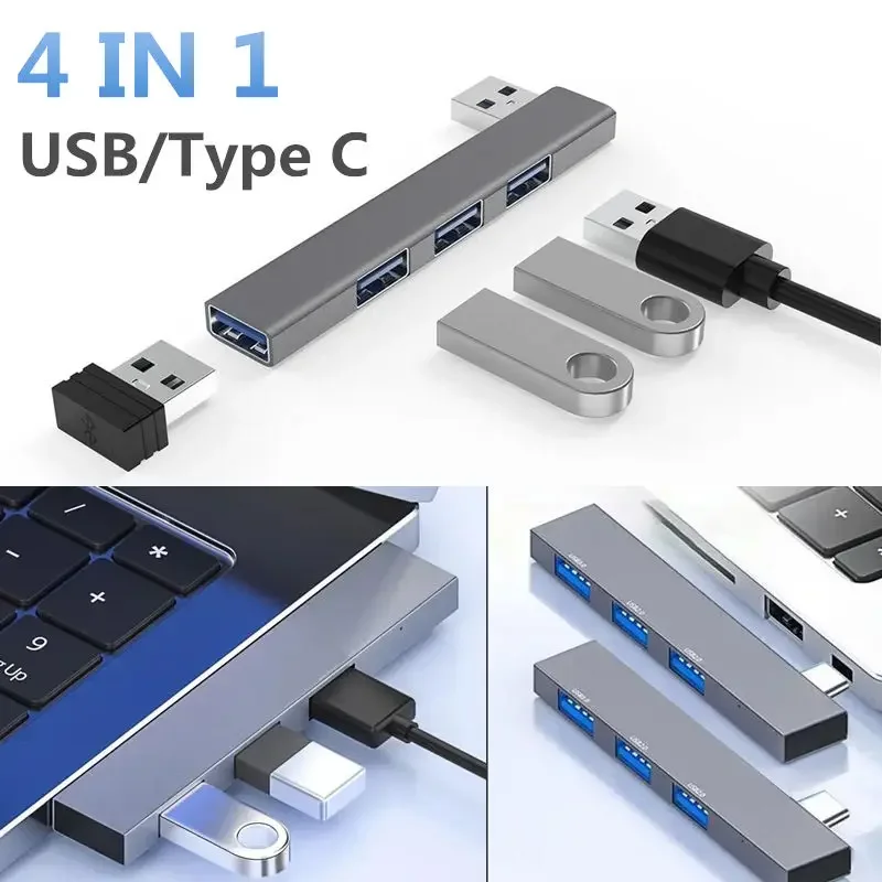 4 In1 Multi USB Splitter OTG Adapter USB/TypeC HUB USB3.0 4 Port For Macbook Air15 13 Pro14 Pro16 Laptop Computer Accessories